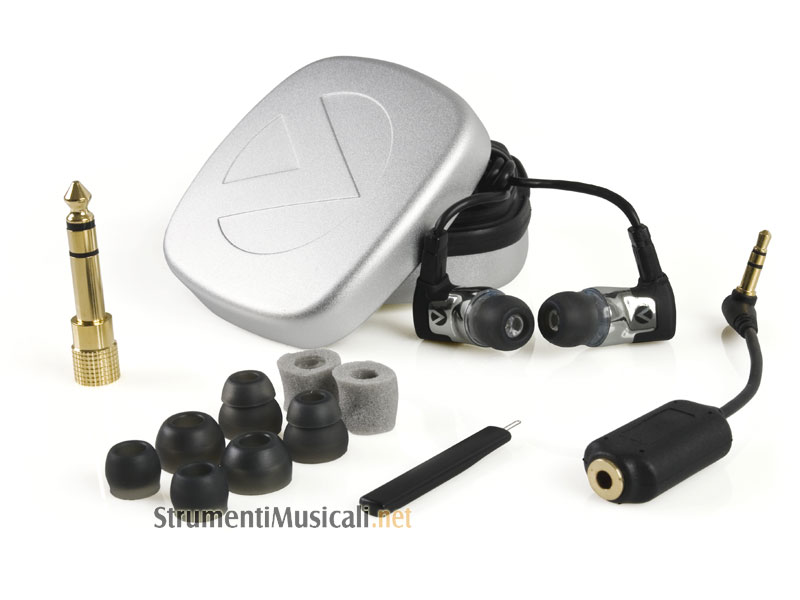 Auricolari di riferimento professionali dotati dell'innovativa tecnologia brevettata "Ultimate Ears", che, grazie da un triplo driver dedicato ai bassi, medi e acuti, combina la piena risposta in frequenza ad un sistema di isolamento dal rumore, per ottenere uno straordinario dettaglio ed equilibrio tonale. Ideali per l'uso in spettacoli dal vivo così come per l'ascolto critico di tutti i tipi di musica. Per adattarli all'anatomia dell'orecchio, gli auricolari IE-40 vengono forniti con un equipaggiamento di adattamento universale, con capsule assortite che assicurano un conforto ottimale ed un migliore isolamento dai rumori esterni. Sono inclusi inoltre una custodia in metallo leggero ed un attenuatore/limiter ideale per chi viaggia in aereo, per portare ad un livello confortevole il volume d'uscita di annunci, film o musica. Il cavo da 117cm è amovibile e ricollocabile, per estendere la vita del tuo investimento.