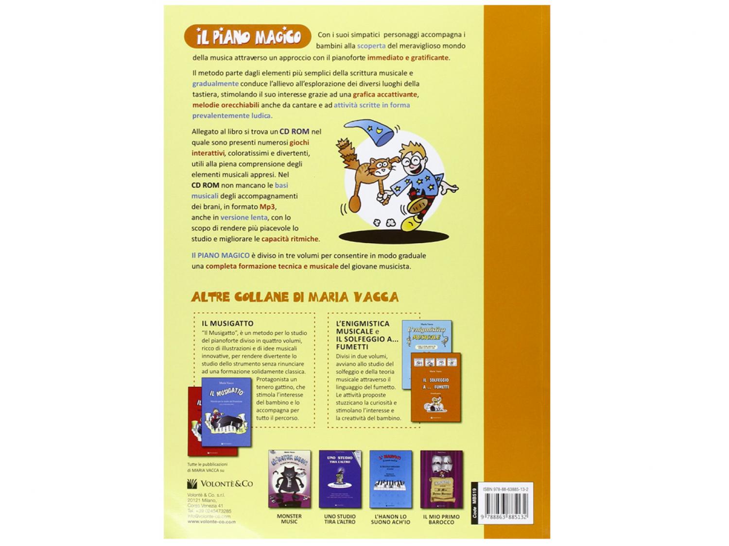 Il Piano Magico, con i suoi simpatici personaggi, accompagna i bambini alla scoperta del meraviglioso mondo della musica attraverso un approccio al pianoforte immediato e gratificante. Il metodo parte dagli elementi più semplici della scrittura musicale e gradualmente conduce l'allievo all'esplorazione della tastiera, stimolando il suo interesse grazie ad una grafica accattivante, melodie orecchiabili anche da cantare e altre attività dal carattere prevalentemente ludico. Allegato al libro si trova un CD ROM con numerosi giochi interattivi, coloratissimi e divertenti, utili alla piena comprensione degli elementi musicali proposti. Non mancano le basi musicali degli accompagnamenti dei brani, in formato MP3, anche in versione lenta, utili a rendere più piacevole lo studio e migliorare le capacità ritmiche. Il Piano Magico è diviso in tre volumi per consentire una formazione tecnico/musicale completa e graduale.