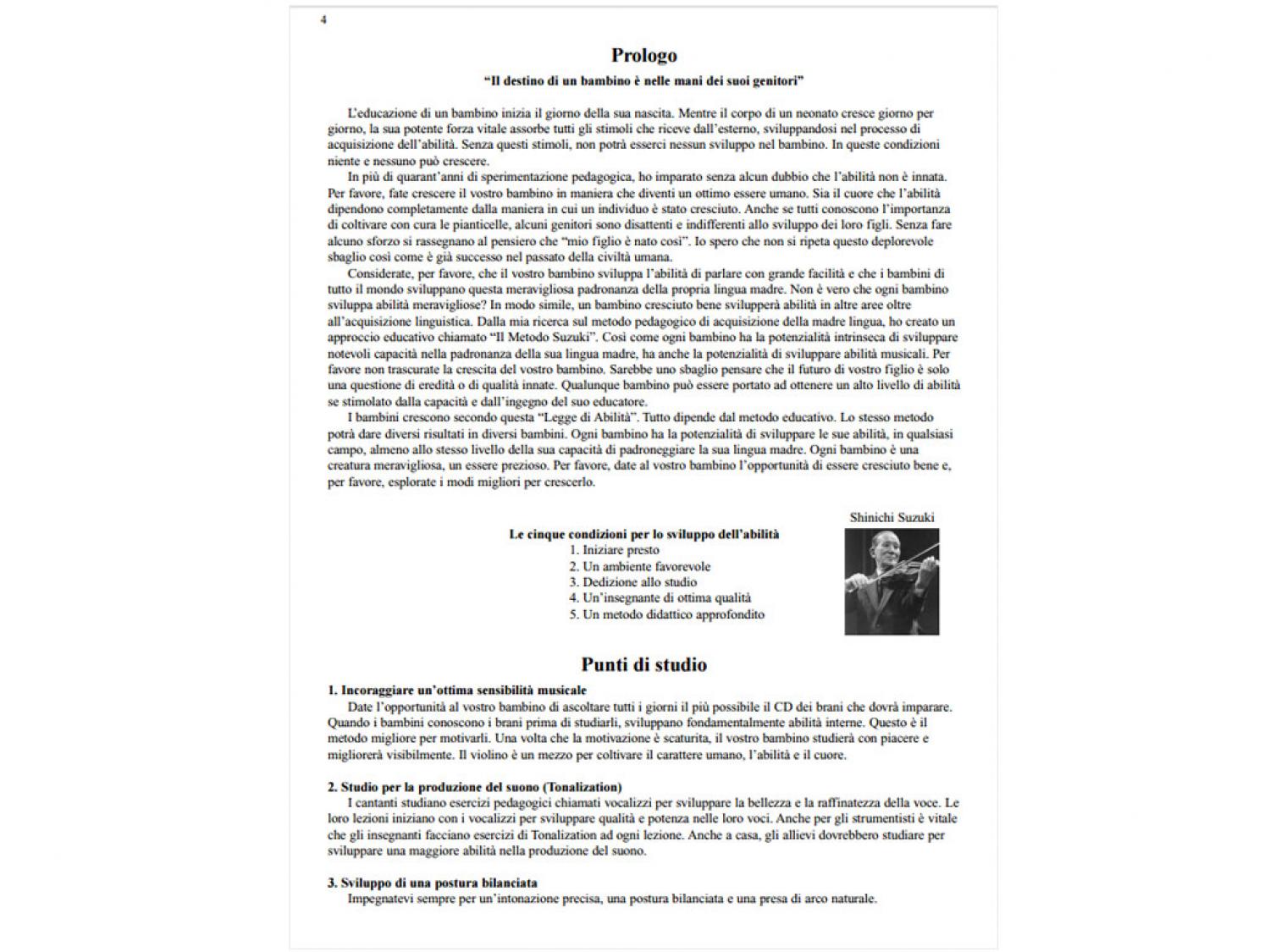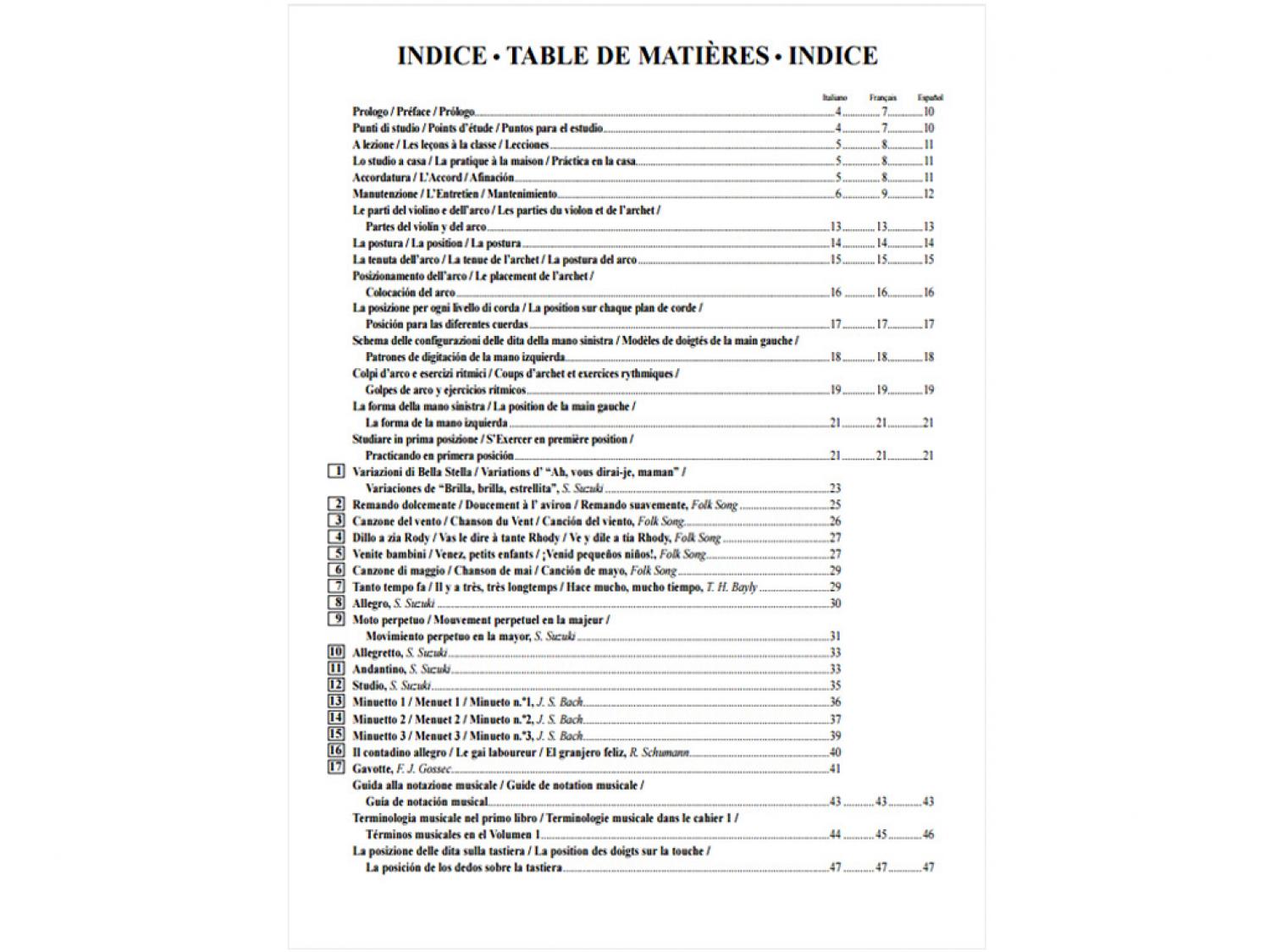 È il primo volume del Metodo Suzuki dedicato al violino, pubblicato in una nuova edizione anche in italiano. I temi di studio affrontati sono, in particolare l'incoraggiamento alla sensibilità musicale, lo studio per la produzione del suono (Tonalization), lo sviluppo di una postura bilanciata, lo stimolo alla motivazione (compito affidato insieme a insegnanti e genitori).