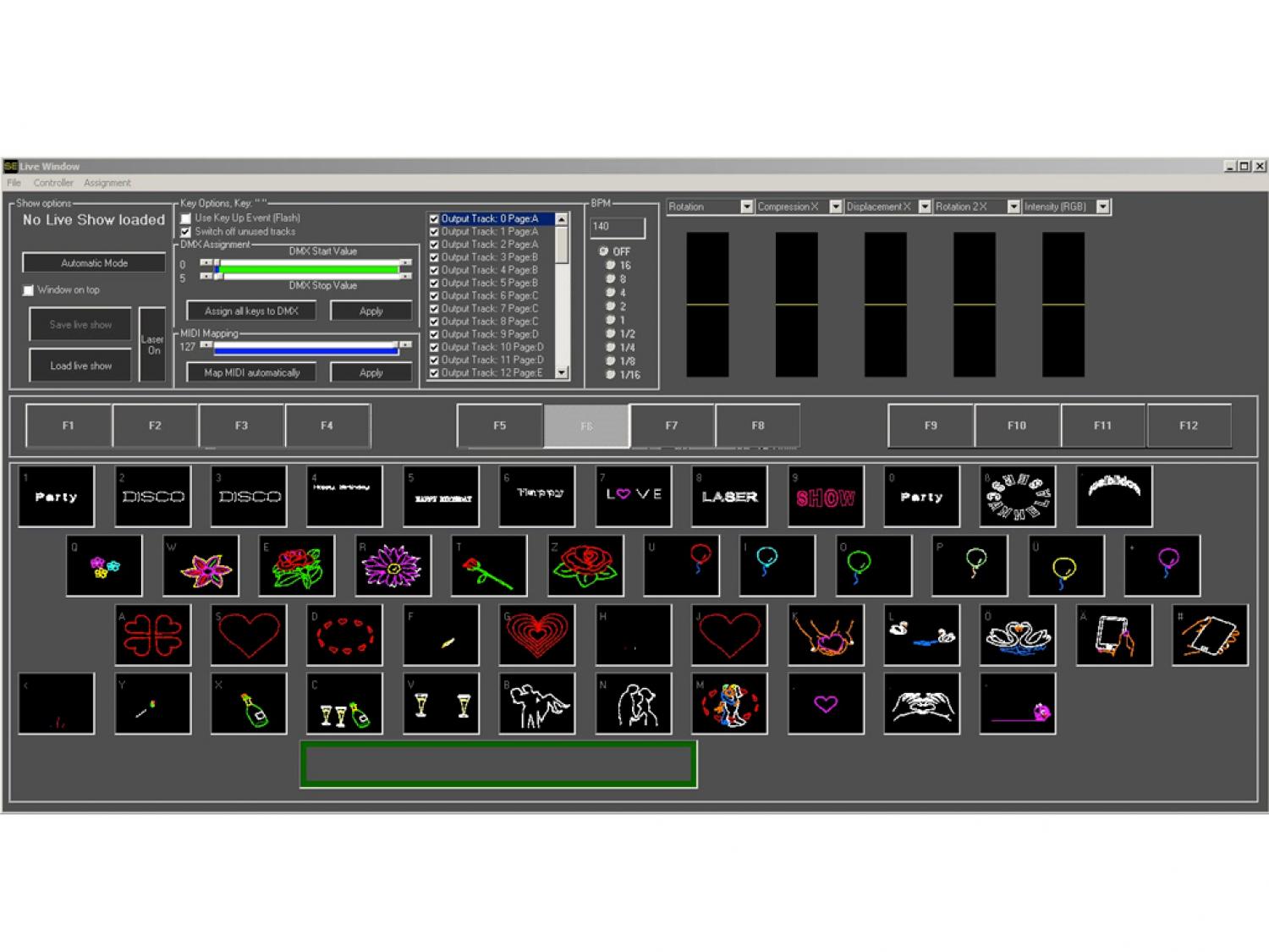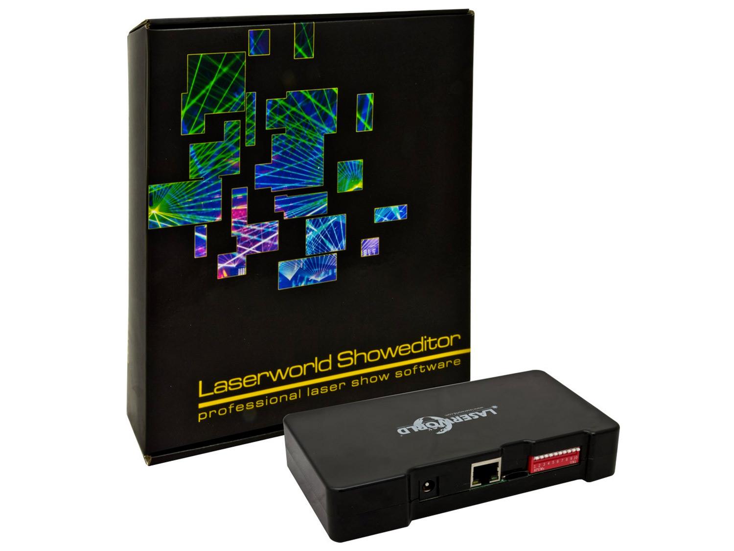 Showeditor di Laserworld è un software di controllo all-in-one per spettacoli laser fornito di molte funzioni facili da usare per sia per i principianti che per i professionisti. È dotato di una creazione intuitiva di spettacoli laser basati su linee temporali e spettacoli laser pronti all'uso con comandi ed un funzionamento semplice. Il software include 100 laser show e profili MIDI preconfigurati per un utilizzo immediato. I file ILDA (*.ild) possono essere esportati ed importati, consentendo uno scambio semplice tra diversi prodotti software. Showeditor supporta anche l'input e l'output DMX: Può essere comandato a distanza tramite un controller DMX e può controllare apparecchi di illuminazione di qualsiasi tipo. Funzioni MIDI avanzate garantiscono la creazione dei propri profili e la compatibilità con i segnali timecode SMPTE, che lo rendono adatto per applicazioni multimediali professionali. Grazie al Figure Editor anche i principianti riescono a creare proprie immagini, loghi e testi. Gli utenti professionali possono beneficiare di funzionalità avanzate, come il generatore di abstract, adattamento del colore e strumenti di ottimizzazione versatili. L'interfaccia di rete ShowNet legge card Micro-SD su cui è possibile memorizzare file *.ild. I file possono inoltre essere riprodotti automaticamente o triggerati singolarmente tramite DMX.