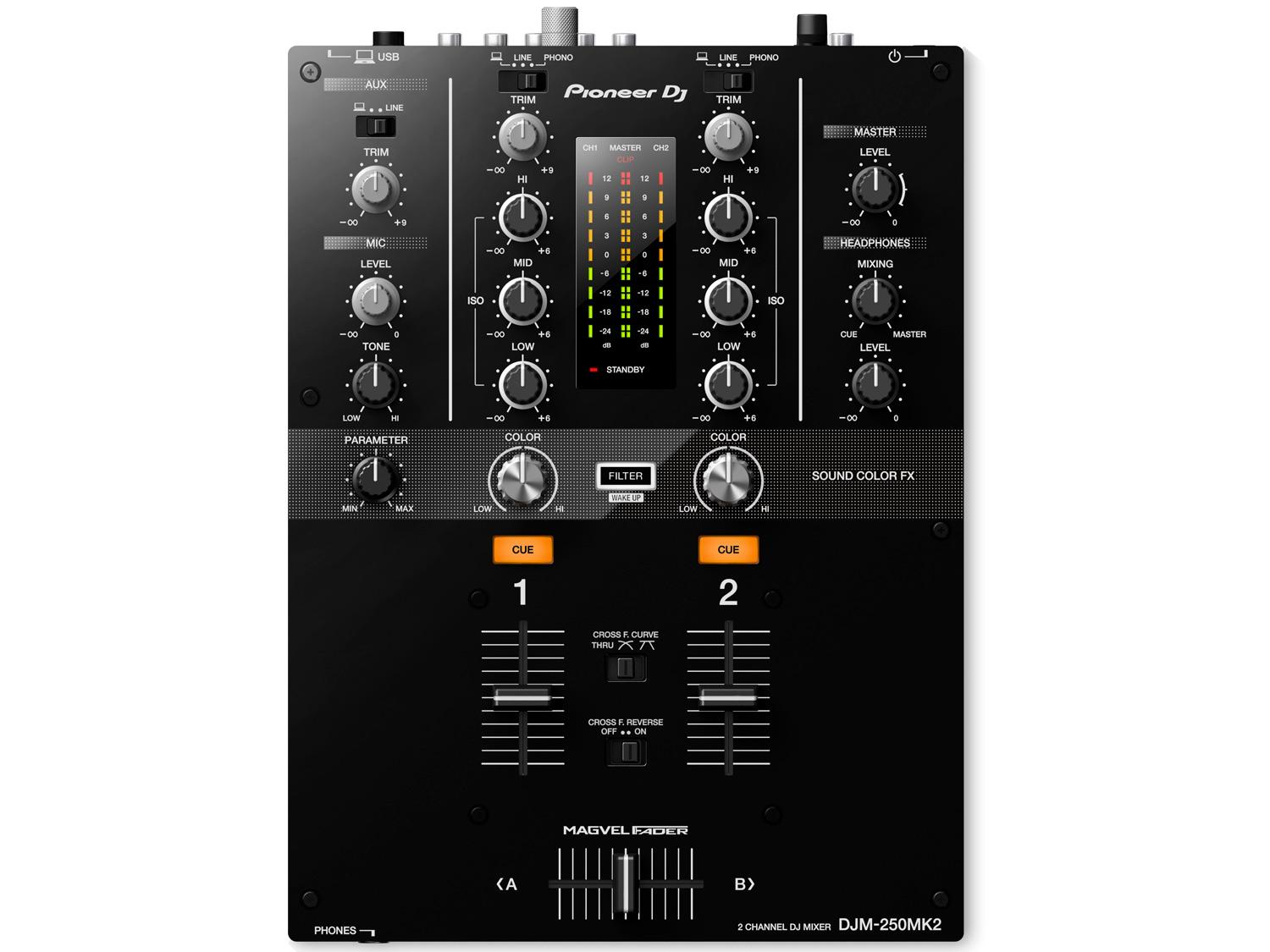 Il DJM-250MK2 ha ereditato alcune delle caratteristiche professionali del popolare DJM-900NXS2, come ad esempio il crossfader Magvel e filtro Color Sound FX. I controlli semplici, un layout chiaro, e gli isolatori a 3 bande dedicati consentono di scratchare e mixare istintivamente. La tecnologia dithering su questo mixer produce un audio caldo, di alta qualità sia da fonti analogiche che digitali. Inoltre la sua scheda audio built-in permette di collegare il mixer al PC / Mac e utilizzare rekordbox dj per esibirsi con CDJ. Oppure puoi collegare il DJM-250MK2 a giradischi e utilizzare DVS rekordbox in combinazione con il vinile di controllo per scratchar e mixare file digitali memorizzati sul computer.