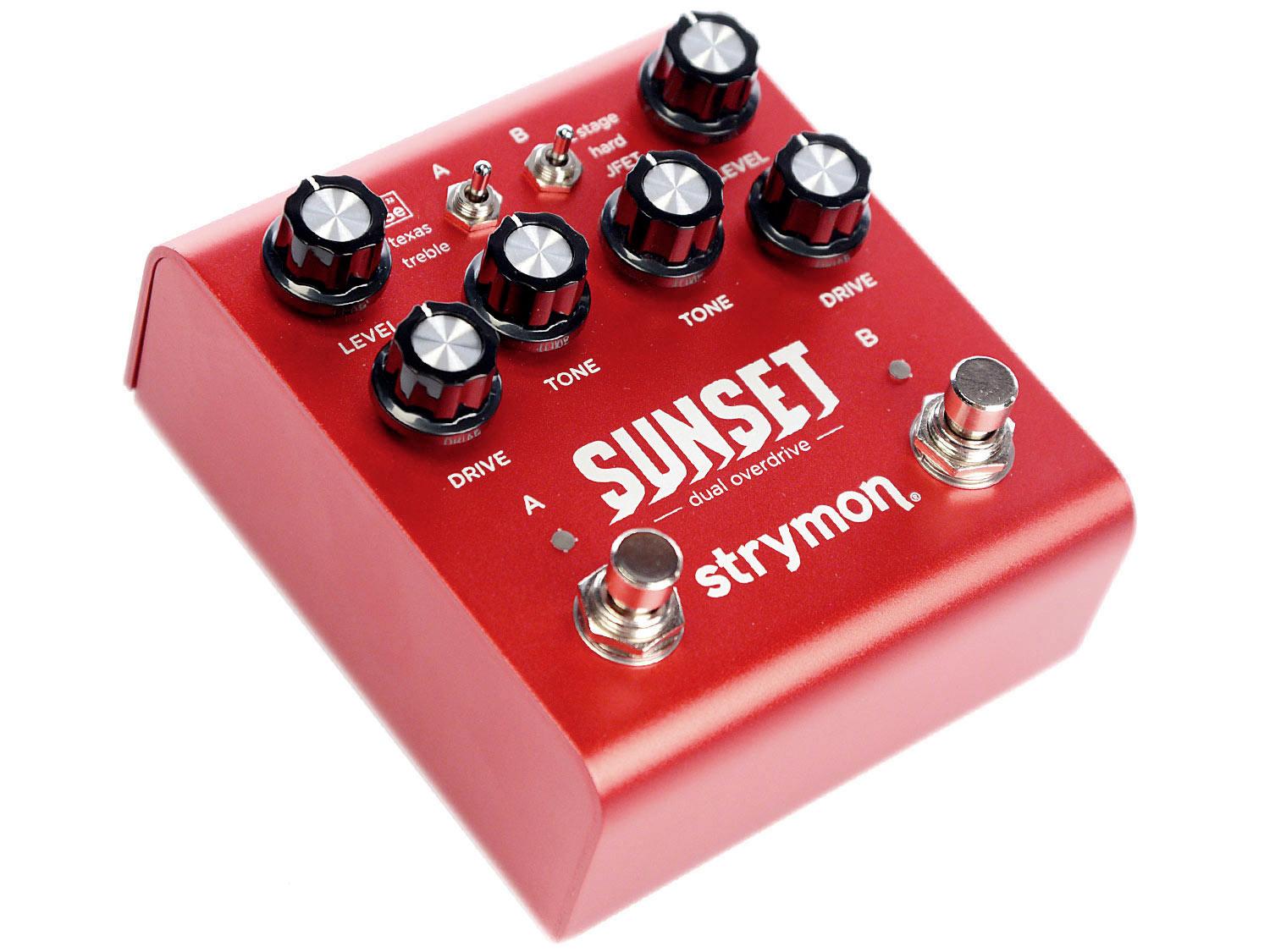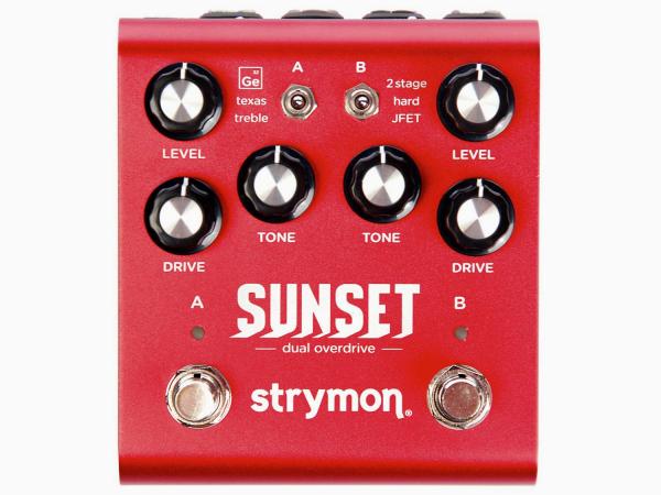 Il nuovo Strymon Sunset offre il meglio dei classici circuiti overdrive, appositamente customizzati per un gratificante controllo istantaneo di una grande gamma di suoni ricercati. Strymon ha studiato sei esclusive tipologie di circuito che si trovano in molti iconici overdrive classici, e le ha unite insieme in una singola unità a due canali. Sunset è davvero due overdrive customizzabili, selezionabili in maniera del tutto indipendente, e dal percorso del segnale flessibile, appositamente progettati e calibrati per suoni complementari quando vengono abbinati. Sei distinti circuiti che reagiscono in maniera diversa sotto le mani, due in uno, insieme nello stesso conveniente pacchetto. Spingi il tuo amplificatore in qualsiasi modo tu voglia, dal suono più trasparente fino a quello più saturo, passando per tutte le vie di mezzo. Fin dai tempi in cui gli overdrive furono creati semplicemente per spingere un amplificatore al limite, al fine di ottenere un suono saturo anche ad un volume accettabile, i chitarristi si sono rapidamente evoluti verso il desiderio di volere più livelli, delle sonorità multistage. La somma di più stadi dà più flessibilità e un maggior range di suoni disponibili. Potete trovare un overdrive che suona molto bene da solo, ma passandolo attraverso un secondo overdrive si raggiunge una nuova dimensione sonora. Il Sunset consente di usare singolarmente ciascuno dei sei circuiti di overdrive, oppure di sommare l'overdrive del canale A attraverso il canale B, o al contrario il canale B attraverso il canale A, o ancora di utilizzare i due circuiti in parallelo.
