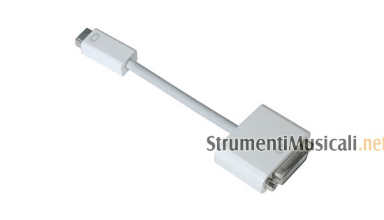 L'adattatore Mini-DVI/DVI Apple è progettato per i sistemi iMac (Intel Core Duo), MacBook e PowerBook G4 12". Collegate l'adattatore alla porta Mini-DVI del computer e l'estremità DVI dell'adattatore a un monitor o a un proiettore DVI esterno. Potete anche utilizzarlo unitamente all'adattatore DVI-ADC Apple opzionale (in vendita separatamente) per collegare il computer a uno schermo meno recente con connettore ADC. Supporta l'uso in modalità Duplicazione dello Schermo e Scrivania Estesa.