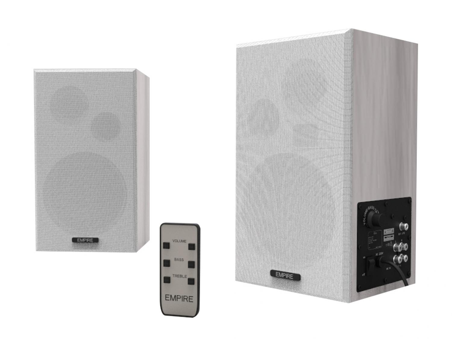 Le Empire WB-100 Digital hanno dimensioni molto particolari perché, nonostante montino un Woofer di generose dimensioni, si è riusciti a contenere la profondità del cabinet affinchè non risultassero troppo grandi. E' il primo sistema audio dedicato al mondo Educational di questa fascia prezzo che utilizza Woofer da 5" anziché un classico Woofer da 4". Il pannello dei controlli è stato razionalizzato: ora è presente un unico potenziometro per regolare Volume, Bassi e Acuti (ruotando si regola l’impostazione mentre premendo si passa alla funzione successiva) e viene fornito un pratico Telecomando Wireless col quale è possibile regolare tutte le funzioni principali.