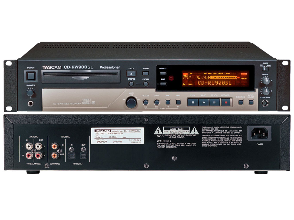 Il CD-RW900SL è un robusto CD Recorder per registrazioni di alta qualità su CD-R e CD-RW. Il materiale sonoro analogico può essere registrato attraverso i connettori RCA e controllato indipendentemente attraverso due controlli di livello destro e sinistro posti sul pannello frontale. Per segnali digitali sono disponibili ingressi ottici e coassiali in formato SPDIF e un controllo digitale del volume è disponibile da un menu dedicato. Le registrazioni lunghe effettuate senza interruzioni possono essere suddivise in singole tracce separate sfruttando un controllo automatico per la divisione delle tracce oppure divise manualmente. È anche possibile creare dei Fade In e dei Fade Out durante la registrazione e immettere informazioni come titoli delle tracce o nomi degli artisti (CD Text) tramite una normale tastiera da computer collegata esternamente all'unità. Il CD-RW900SL eccelle anche nella riproduzione di CD audio e MP3. Si può variare l'intonazione e/o la tonalità del brano, riprodurre tutte le tracce o le singole tracce, riprodurre le tracce in modalità casuale, programmata o ripetuta. È disponibile una completa sezione per la ripetizione ciclica di una sezione A-B di un brano. Grazie alle sue nuove caratteristiche, componentistica di elevata qualità e costruzione robusta, il CD-RW900SL è ideale per la registrazione in casa, in studio, in teatro e in sale da concerto o per installazioni permanenti.