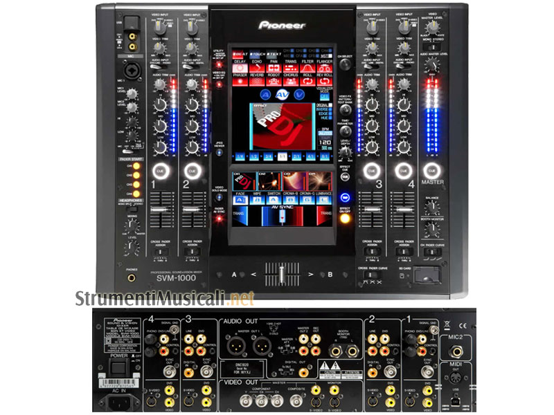 Progettato per essere utilizzato con i deck CD/DVD DVJ-1000, l'SVM-1000 consente ai DJ un controllo completo, sincronizzando gli elementi audio e video dei set. Grazie alla funzione "Visualiser capability" dell'SVM-1000, anche i DJ che lavorano soltanto con materiale audio potranno facilmente aggiungere elementi visivi sincronizzati con la musica. Completo di schermo LCD touch-screen, di una sorprendente gamma di effetti e di una qualità audio a 96 kHz/24 bit, l'SVM-1000 è MIDI assegnabile e funziona in modo analogo all'acclamata serie DJM Pioneer - che per i DJ significa porte aperte alla più totale libertà audiovisiva!