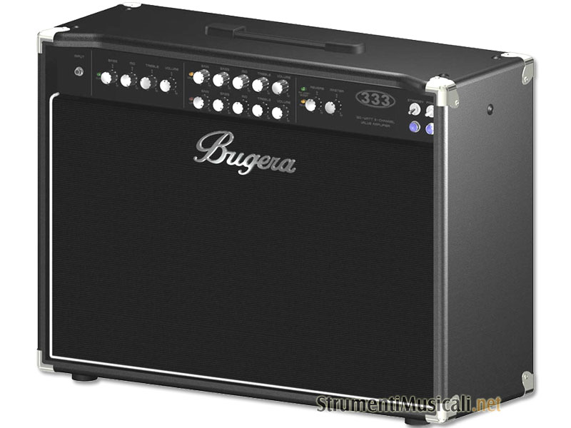 The BUGERA 333-212 is the go-to guitar combo for any rock, metal or hardcore band due to its raw tone, massive power and road-worthy reliability. Whether you want crystal clean punch, sultry smooth classic rock lead tones or that bone shattering metal crunch, the 333 provides extensive tone shaping abilities with virtually unlimited dynamics in a three channel configuration. The 333's brutal power comes from 4 hand-selected and matched BUGERA 6L6 power valves. The 6 BUGERA 12AX7 valves in the preamp add up for terrifying punch and mind-rattling gain. Your fat and juicy guitar tone will sing through two highly respected custom BUGERA 12-inch speakers, faithfully reproducing every nuance of your playing, right down to the fine reverb tails from one of two separate reverbs. Each channel features Volume, Bass, Mid and Treble, while the Crunch and Lead offer additional Gain control. We added Impedance switching to match virtually any speaker cabinet, from 4, 8 to 16 Ohms. Plus you'll love the detail in the fine reverb tails. The amp comes with a four-way heavy-duty metal footswitch for channel and effects loop selection to tap your favorite effects. This boutique-style amp is constructed using precision manufacturing, blended with our artisan hand assembly, so you can be confident it will stand the test of time. The next time you wield your axe, feel the Soul of Valves with the BUGERA 333-212.