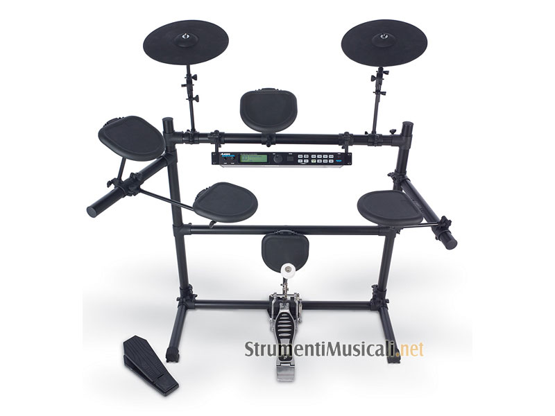 Facile da assemblare e comoda da trasportare, la DM5 Kit, grazie alla sua enorme varietà di suoni, è lo strumento ideale sia per esercitazioni in cuffia che per esibizioni live. Punto di forza della DM5Kit è la Dynamic Articulation - dinamicità del suono che varia a seconda della forza con cui viene suonato un pad - che consente un'eccellente simulazione della suonabilità di una batteria acustica La DM5Kit è composta dal modulo sonoro DM5 della Alesis e da un kit composto da sensitive pads e pedali.