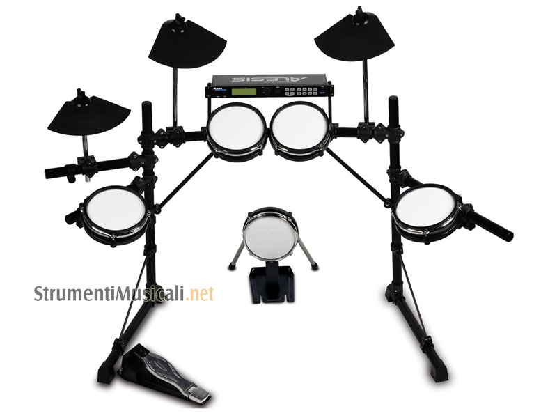 Alesis DM5 Kit è la soluzione ideale per chi vuole una batteria elettronica di alta qualità e dal suono professionale. Facile da assemblare e comoda da trasportare, la DM5 Kit, grazie alla sua enorme varietà di suoni, è lo strumento ideale sia per esercitazioni in cuffia che per esibizioni live. Punto di forza della DM5Kit Pro è la Dynamic Articulation - dinamicità del suono che varia a seconda della forza con cui viene suonato un pad - che consente un'eccellente simulazione della suonabilità di una batteria acustica. La DM5Kit è composta dal modulo sonoro DM5 della Alesis e da un kit professionale composto da 5 tamburi (cassa, rullante e 3 tom), ride, crash e charleston con una struttura molto resistente e facile da montare.