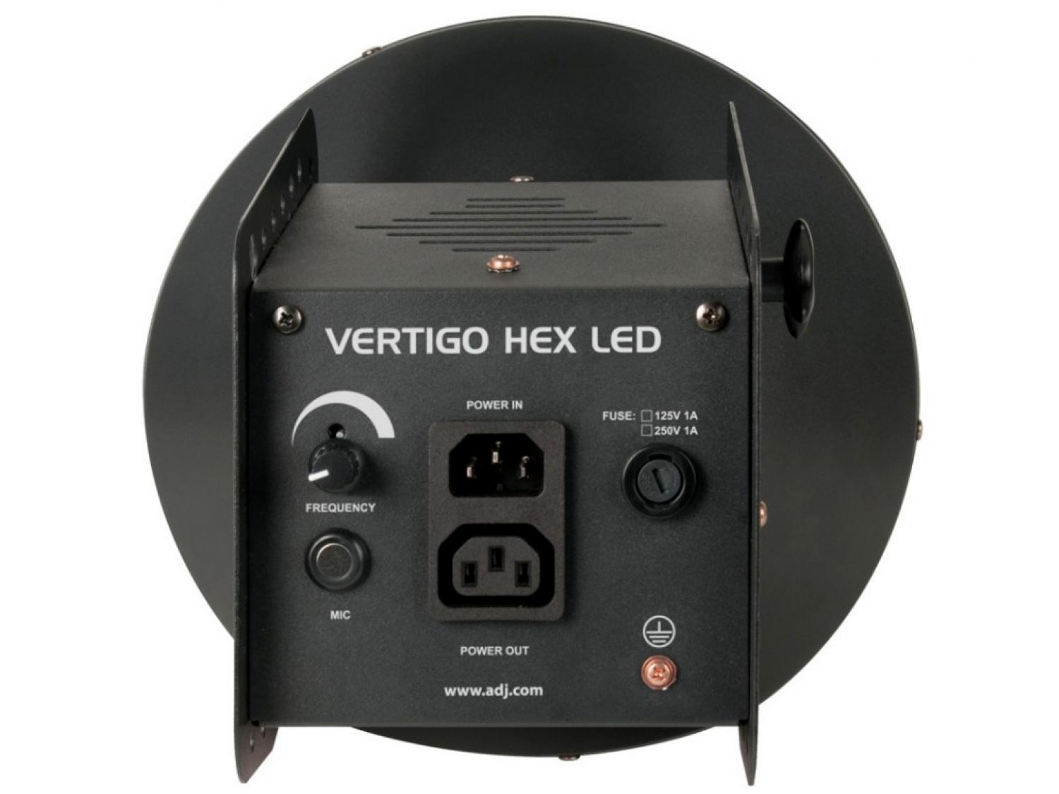 Vertigo HEX LED è l'evoluzione di Vertigo, uno dei più popolari effetti luce nella storia di ADJ. Equipaggiato con 2 HEX LED (6-in-1: Rosso, Verde, Blu, Ciano, Ambra e Bianco) da 12 Watt l'uno, consente una più ampia gamma di colori e una maggiore luminosità. Vertigo HEX LED è di facile utilizzo e i suoi 20 raggi multicolore danzano al suono della musica. ADJ ha aggiunto i connettori In/Out IEC per poter comodamente alimentare più proiettori in cascata. Gli HEX LED di ADJ hanno una durata stimata di circa 50.000 ore.