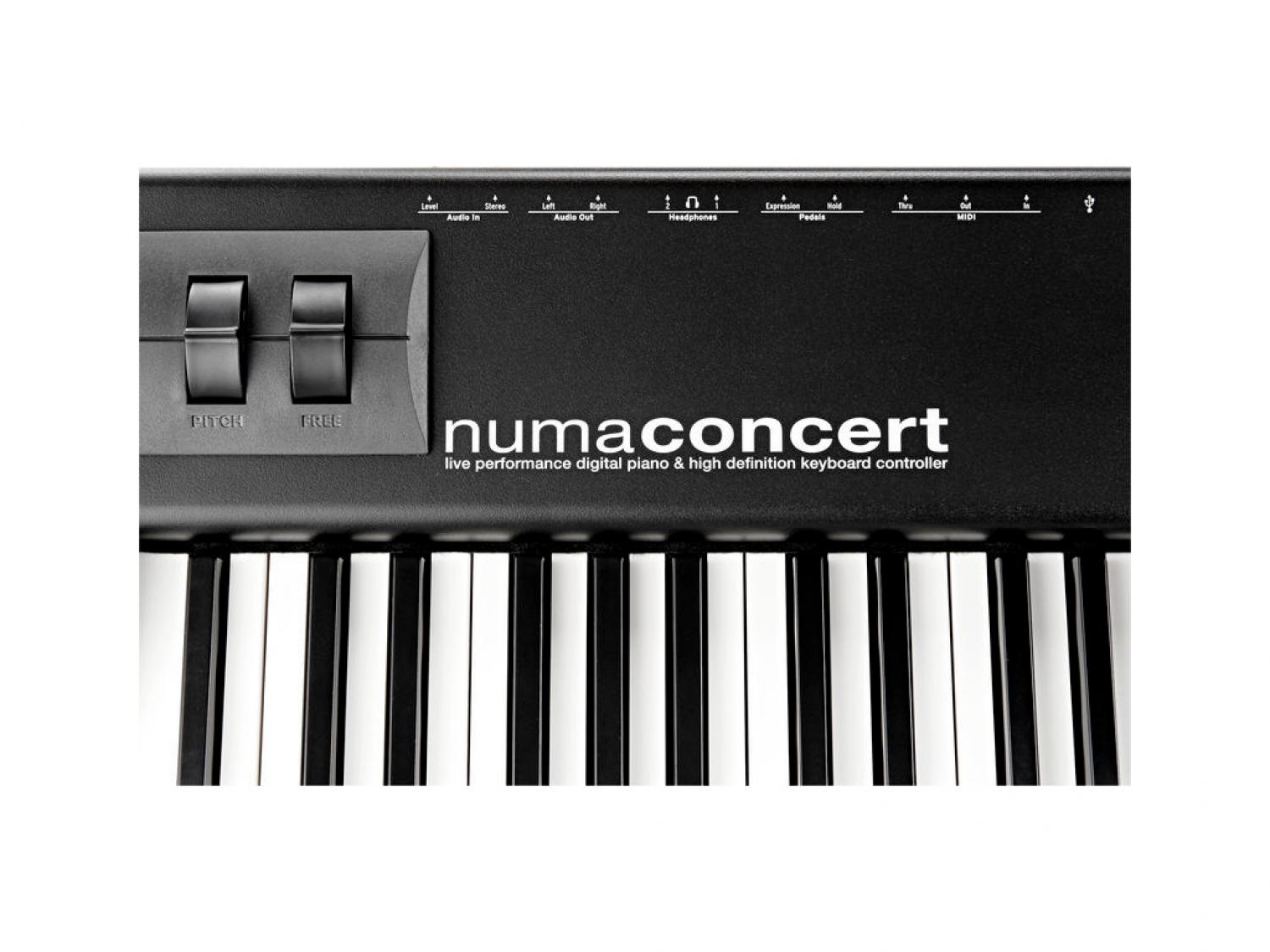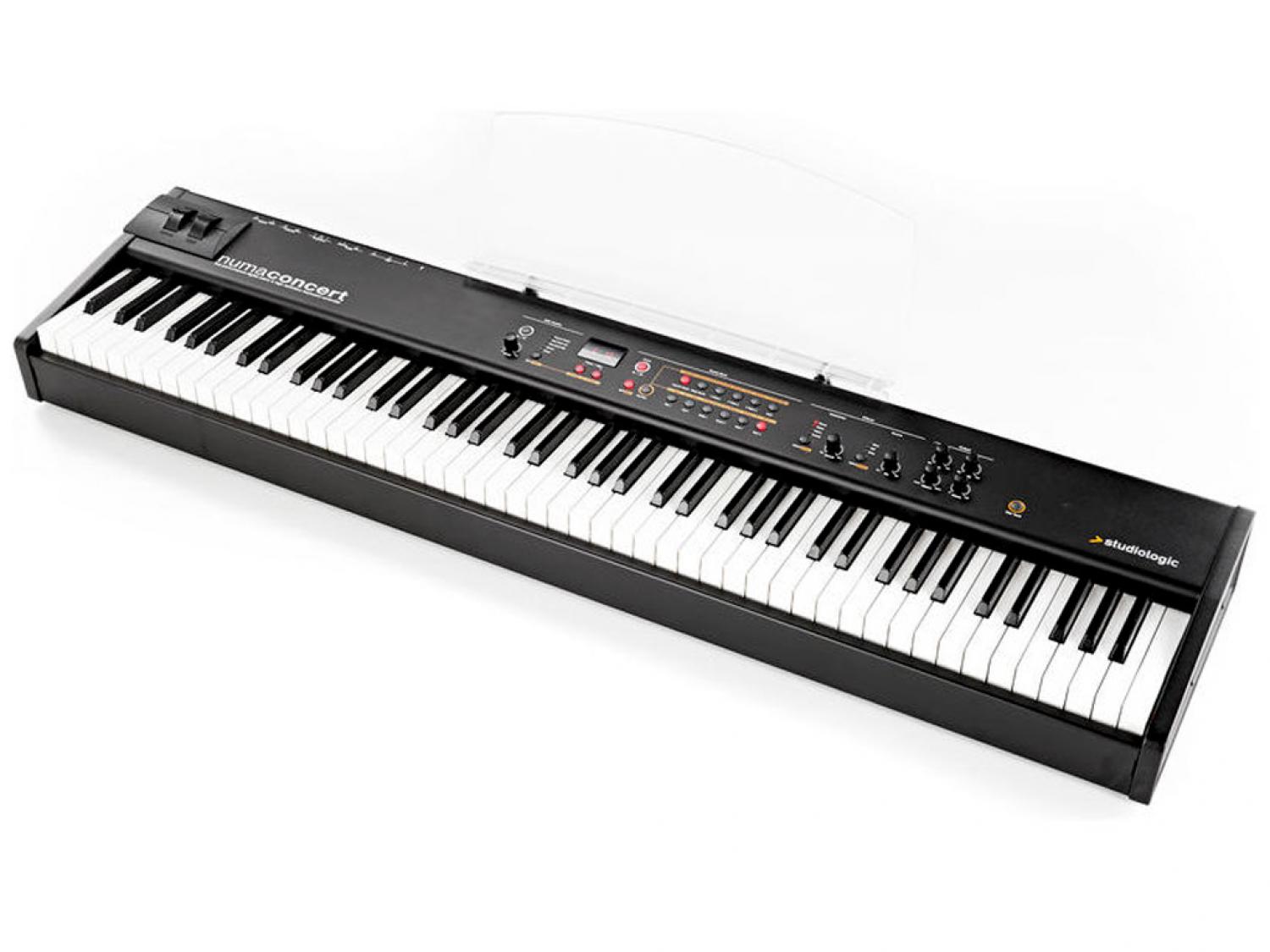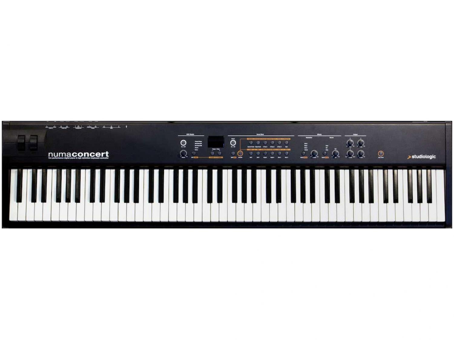 Studiologic Numa Concert è un pianoforte professionale da palco con tastiera 88 tasti Graded Hammer Action, con tastiera in legno e superficie dei tasti bianchi "Ivory Feel". La meccanica della tastiera riproduce in modo incredibile il tocco di un pianoforte da concerto mentre, il triplo sistema di rilevamento dei tasti, consente l'esecuzione di ribattuti estremamente veloci. I nuovi campioni di pianoforte da concerto sono stati acquisiti con apparecchiature d'altissimo livello, con la collaborazione di esperti tecnici accordatori e di artisti dello strumento. I nuovi suoni Concert Grand e Stage Grand sono basati su 1GB di campionamenti acquisiti da due pianoforti da concerto di riferimento assoluto: un Model D ed un F308. Il perfetto controllo su questa struttura sonora è reso possibile dalla rinomata tastiera FATAR TP/40W con tasti in legno. Questa tastiera possiede tre punti di rilevamento, che forniscono un sistema di misura della velocità d'ogni tasto ad alta risoluzione. La risonanza delle corde è stata accuratamente analizzata, riprodotta, ed implementata sul Numa Concert, in modo da poter ottenere lo stesso realistico effetto. L'implementazione di tutto ciò è stato possibile grazie ad una potente tecnologia DSP, in grado di generare fino a 128 note di polifonia.