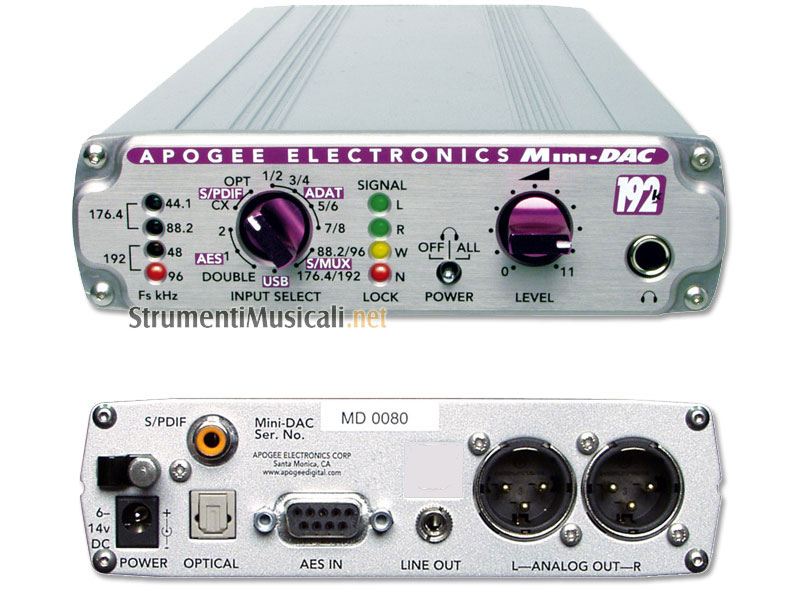 Con il venerabile AD-1000 in testa, Apogee si avvia al compimento di una serie della prossima generazione, convertitori compatti, di alta qualità che sia i professionisti che gli amanti degli studi home non ne vorranno fare a meno. E sebbene il Mini-DAC sia costruito per resistere e dal prezzo accessibile (è molto meno costoso di qualsiasi altro convertitore D/A di Apogee), garantisce le prestazioni di un convertitore D/A senza rivali nel mondo degli studi professionali.
