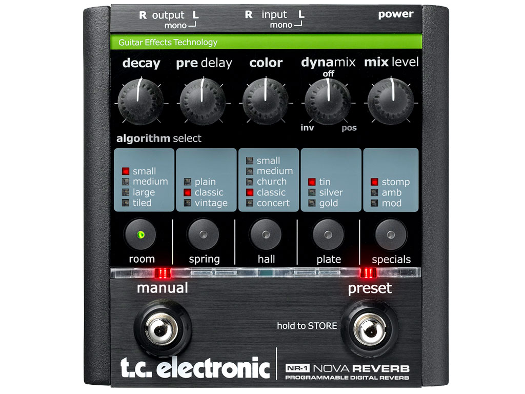 Basati sulla tecnologia e sulle conoscenze acquisite grazie al rinomato processore TC 2290 Dynamic Digital Delay e ai mitici riverberi TC Electronic, i pedali della serie Nova innalzano i termini di paragone degli effetti a pedale per chitarra, ridefinendo il significato di "stato dell'arte". NR-1 Nova Reverb mette a disposizione degli effetti digitali caratterizzati da una qualità senza compromessi, racchiusi in un pedale dal design compatto.