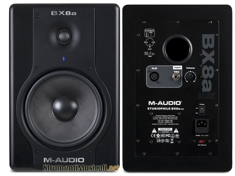 Ho acquistato i monitor M-Audio Bx8a Deluxe dopo un'attenta ricerca. Rappresentano un ottimo compromesso tra dinamica, risposta in frequenza, qualita' del suono e coerenza di fase. Il prezzo e' accattivante, la linea estremamente pulita. Pochi controlli inutili sul retro. Il suono e' tendente al caldo, sempre avvolgente. L'immagine sonora prodotta e' chiara e definita. Molto piacevoli da usare come monitor audio. Le consiglio vivamente. Marcello G. da Taranto