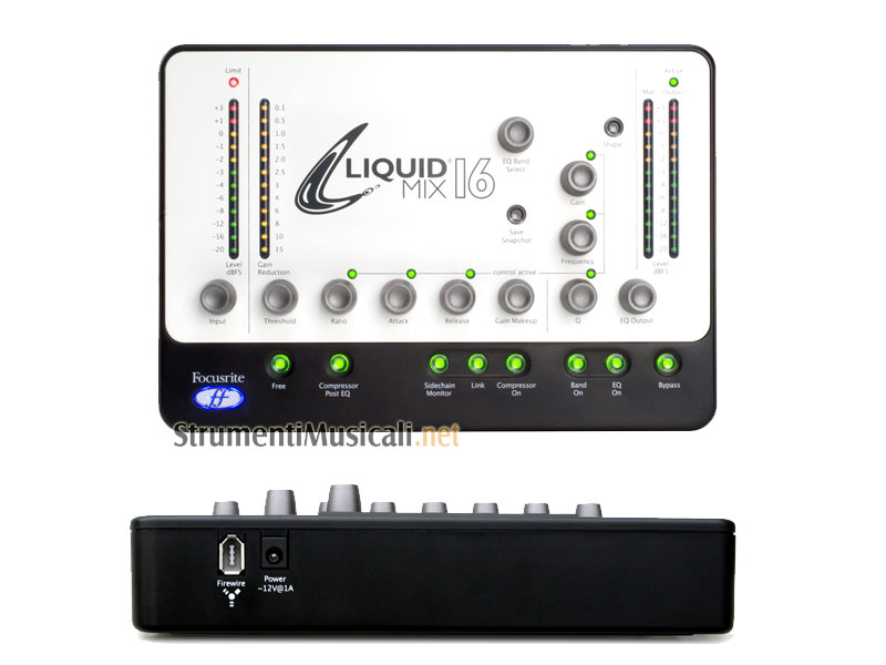 Liquid Mix 16 is the latest product in Focusrite's award-winning Liquid range, bringing the power of Liquid Mix to an even wider audience. Combining the same pool of classic EQ and Compressor emulations with a killer control surface, Liquid Mix 16 brings the sound of the obsolete, the priceless and the historically significant, within reach of even the most modest studio owner. Each of the sixteen mono channels provides Compressor and EQ emulations selectable from a huge pool of high-quality vintage and modern day classics. Forty Compressors and twenty EQs are available straight out of the box, with some additional emulations available for free online. As with the original Liquid Mix, a hybrid seven-band 'super EQ' is available in every instance, built out of separate classic EQ sections. Liquid Mix 16 also offers a 'free' mode for the compressor. Original compressors with limited or absent controls suddenly become fully featured - yours to use as you choose. Each channel appears as a separate VST/AU/RTAS effect within the sequencer and will work within all major applications, including Pro Tools. The same optional expansion card is available for both Liquid Mix and Liquid Mix 16. With Liquid Mix 16, the card allows users to increase the number of available channels at 48kHz from 16 to 24 (sold separately). Liquid Mix uses the same patented Dynamic Convolution process as Focusrite's other Liquid products. Unlike standard convolution techniques, Dynamic Convolution utilizes vast processing power to sample the effect of a classic processor on a series of audio pulses, at many different gain settings and frequencies. All this processing is done using onboard DSP, so the processing has a relatively low effect on your computer's own CPU, (variable subject to the sequencer used). Liquid Mix 16s DSP is housed within an elegant desktop control solution and connects to the computer via Firewire, which also provides bus-powering. The physical metering, rotary controls and buttons from the original Liquid Mix are provided here. The hardware helps to provide a tactile ergonomic solution, placing the sounds of an array of classic processors at your fingertips. You can choose to control each channel either from the desktop control unit, or from within the sequencer or an alternative controller, using the same simple GUI from Liquid Mix, which functions exactly like a plug-in. The Liquid range of products has won in excess of twenty awards to date, becoming a worldwide hit in the audio production world, from project studios to post production and broadcast facilities, not to mention the Live arena. Focusrite looks forward to bringing Liquid technology to a growing audience, providing the sound of vintage processing and the reliability of digital processing to studios the world over.