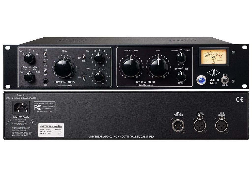 Il LA-610 MkII di Universal Audio combina un mic preamp interamente valvolare vintage, sentito in album classici che vanno dai Beach Boys a Van Halen I, con autentici circuiti di opto-compressione Teletronix T4. Questo classico Channel Strip, con il suono del suo preamplificatore caldo e morbido, con una compressione naturale, è stato aggiornato con caratteristiche moderne, richieste dagli utenti, come il true bypass del compressore, un level meter più grande, un incremento dell'output ed un alimentatore auto-switching. Il LA-610 MkII si basa sui leggendari moduli sviluppati da Bill Putnam negli anni '60. Celebri per il loro carattere musicale ed il loro calore, innumerevoli classici stati registrati usando questi preamplificatori. Dopo la sezione di preamplificazione, il LA-610 MkII offre il compressore ottico T4. Il funzionamento semplice e la natura dipendente dal programma del T4 fornisce lo stesso controllo estremamente musicale che ha fatto del LA-2A un classico molto amato per più di 40 anni. Il rilevatore elettro-ottico, o "cellula T4", è il cuore e l'anima del Teletronix LA-2A.