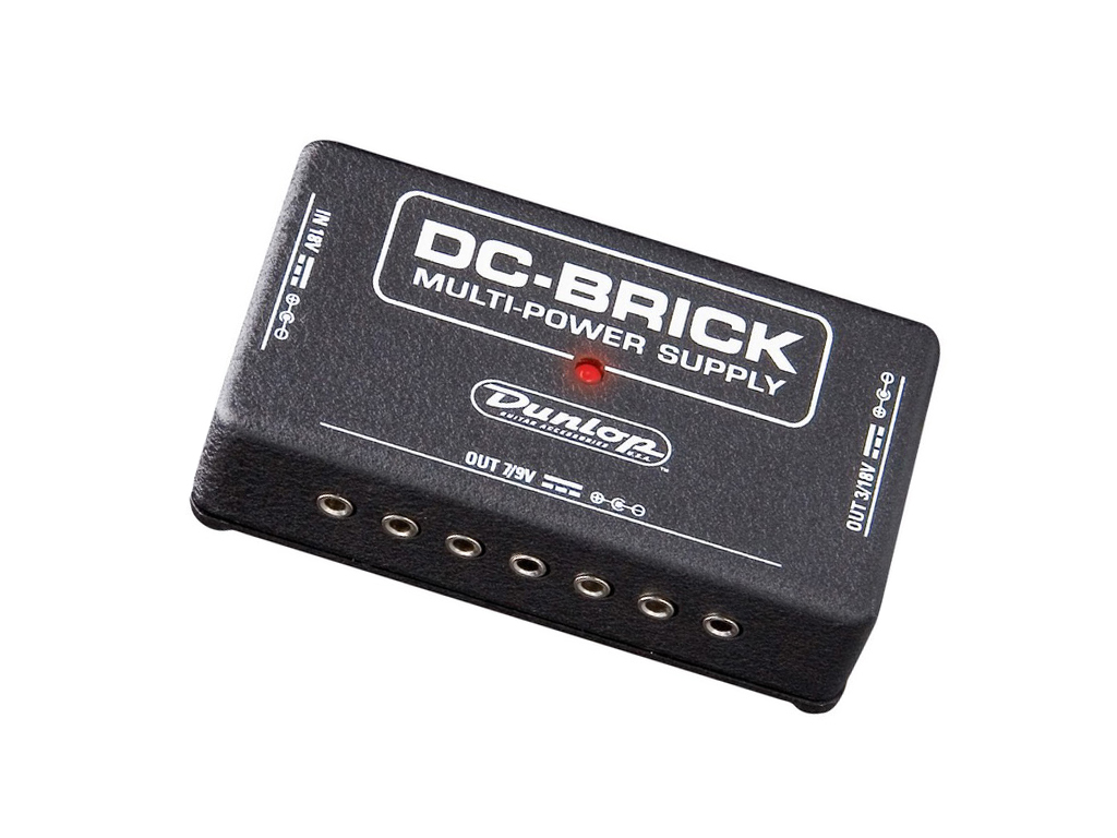 The DC Brick is the most reliable and consistent way to power your effects board. Forget the collection of unsightly wall warts ... the DC Brick will drive ten pedals or stomp boxes from the same source! More than a power supply, this box is a power conditioner as well. Unlike aging batteries, the Brick supplies predictable voltage at all times, keeping your effects consistent from show to show. Its FCLC (Foldback Current Limiting Circuit) provides ultimate protection against power shorts and overloads. Even at full load, you'll enjoy the quiet and cool operation of a fully regulated power supply. But since battery-powered effects rarely exceed 30 milliamps each, you're not likely to use anywhere near the Brick‘s capacity of 1000 milliamps output! Power: Included AC power adapter can utilize a wide range of international wall power from 100 to 240 volts, at 47 to 63 Hz. Supplied with U.S. plug. Controls: - Power Input from AC Adapter (Use only the included adapter!) - Seven 9V outputs can handle an average of 55 milliamps each, or a total of 375 milliamps in any configuration Three 18V outputs can handle an average of 208 milliamps each, or a total of 625 milliamps in any configuration All outputs may be used simultaneously for a total power output of up to 1000 milliamp
