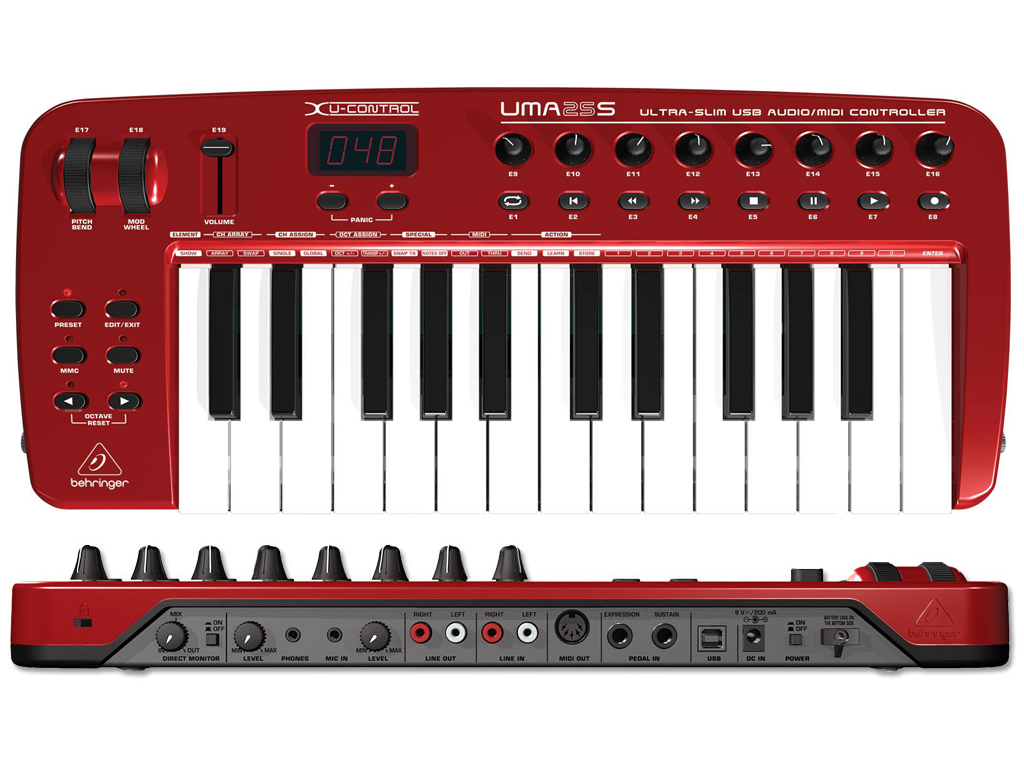 La serie U-CONTROL ha un nuovo membro in famiglia: il bundle con il controller UMA25S MIDI che comprende un'interfaccia audio USB completamente accessoriata. Questo controller portatile USB per tastiera ha 25 tasti sensibili alla velocità per glissandi più "morbidi" e arpeggi più rapidi. 8 manopole, 8 pulsanti, 2 ruote, 1 slider e 2 jack per pedali sono tutti a vostra disposizione per darvi maggior controllo e il display a 3 cifre vi dice esattamente dove siete.