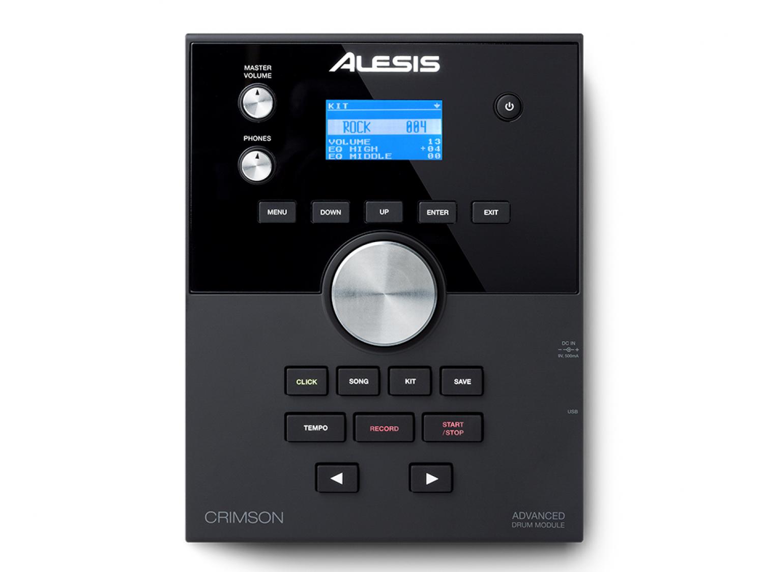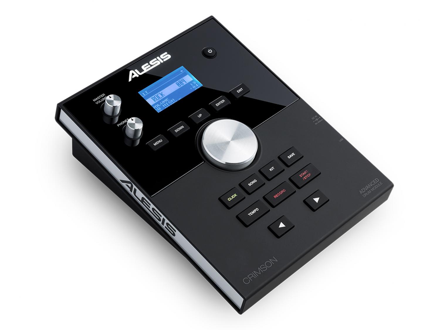 Alesis Crimson Mesh è un kit di batteria completo, professionale, che comprende 5 pad tutti dotati di mesh brevettate dalla stessa azienda Americana, 3 pad piatto con superficie in gomma e il nuovo Crimson Drum Module dotato di una porta USB che permette il caricamento di file .wav da associare alle zone dei vari trigger. Il pad cassa da 8" è installato su un supporto verticale ed è suonabile con qualsiasi pedale per cassa (non fornito in dotazione), anche doppio, mentre il rullante da 12" a doppia zona viene fornito insieme ad uno stand a doppio braccio separato rispetto al resto del rack. Tre sono invece i tom dual-zone, due da 8" e uno da 10". I trigger pad destinati al controllo dei piatti sono un 12" con funzione choke da impiegarsi come crash, un ride a tripla zona da 14" e un hi-hat da 12" fornito del relativo pedale. Il robusto rack cromato utile all'allestimento del kit dispone di 4 gambe e tutti i componenti hardware e gli accessori necessari al montaggio, inclusa la frusta per il collegamento dei pad al modulo sono forniti in dotazione. Il modulo sonoro Crimson Drum include 70 drum kit (50 preset di fabbrica + 20 user) e 9 kit General MIDI pronti all'uso programmati sfruttando la dotazione sonora della wavetable interna con oltre 600 campioni. Nel modulo con polifonia massima di 64 voci, sono inoltre disponibili un metronomo programmabile (30/280bpm) e 60 tracce riproducibili con o senza base ritmica per scopi didattici/allenamento. Il Crimson Drum Module possiede un ingresso mini-jack stereo per il collegamento di sorgenti audio esterne da utilizzare come basi musicali, ma il suo punto di forza è rappresentato da una porta USB alla quale connettere memorie di massa (pendrive da 4 - 64GB) formattate FAT32 che ci consentiranno di importare, quindi assegnare alle zone dei vari pad dei campioni audio in formato wav, ma non solo. I campioni devono essere rigorosamente in formato wav mono, 16-bit con sample rate a 48, 44.1, 32, 22.05, oppure 11.025 kHz e di dimensione massima di 15MB. La chiavetta USB può essere impiegata per caricare e salvare i kit, riprodurre file audio wav (mono 16-bit/48 kHz), o MP3 (max 320 kbps) e per registrare. Il modulo è dotato di un registratore in tempo reale che consente di memorizzare un massimo 5 tracce MIDI, oppure fino a 99 file audio MP3 quando viene utilizzata una memoria di massa USB. Per quanto riguarda le connessioni, oltre al DB25 per il collegamento della frusta trigger, il modulo ci offre un'uscita stereo su connettori (L e R) jack TRS da 1/4", uscita cuffia, porte MIDI IN/OUT tradizionali su connettori DIN e porta USB per il collegamento MIDI I/O con computer o con altri strumenti MIDI compatibili. Sarà quindi possibile utilizzare l'Alesis Crimson Mesh Kit come controller per suonare i virtual instruments dal tuo computer PC o Mac, nonché per controllare altri moduli sonori MIDI compatibili, oppure usare Crimson come modulo sonoro per sequencer o altri trigger pad MIDI. Gli ingressi trigger jack addizionali son Tom 4 e Crash 2.