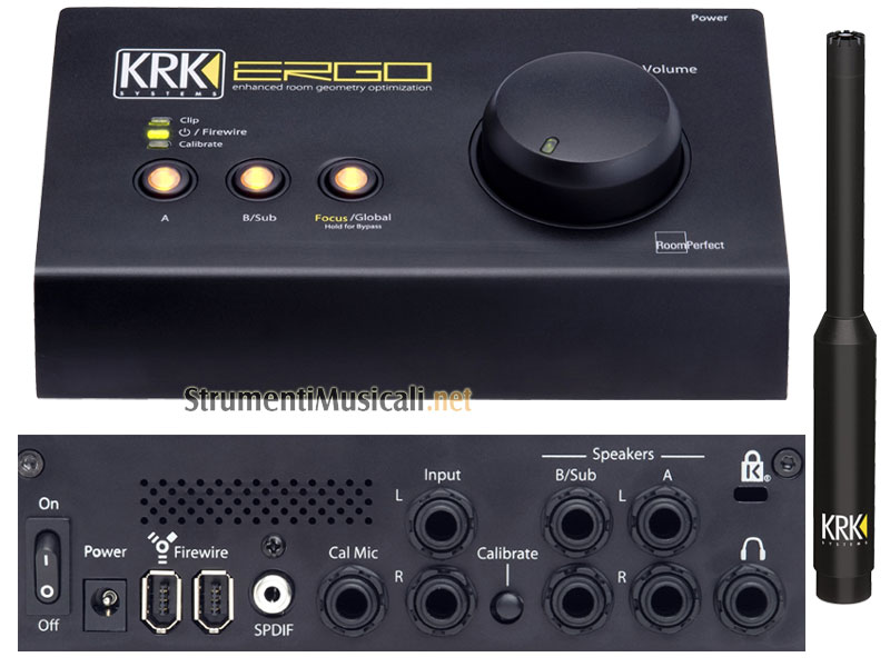ERGO è un innovativo sistema di analisi e correzione acustica per ambienti sviluppato da KRK Systems. ERGO (acromimo di "Enhanced Room Geometry Optimization") è compatibile con tutti i dispositivi di registrazione e monitoring e consente di perfezionare qualunque spazio adibito al missaggio andando a correggere tutti i problemi di acustica presenti, ad un costo di gran lunga inferiore rispetto ai tradizionali sistemi di correzione acustica. In aggiunta ERGO è anche un'interfaccia audio Firewire con 4 ingressi e 6 uscite per PC e Mac e si può utilizzare anche come selettore di speaker e controllo di volume master.