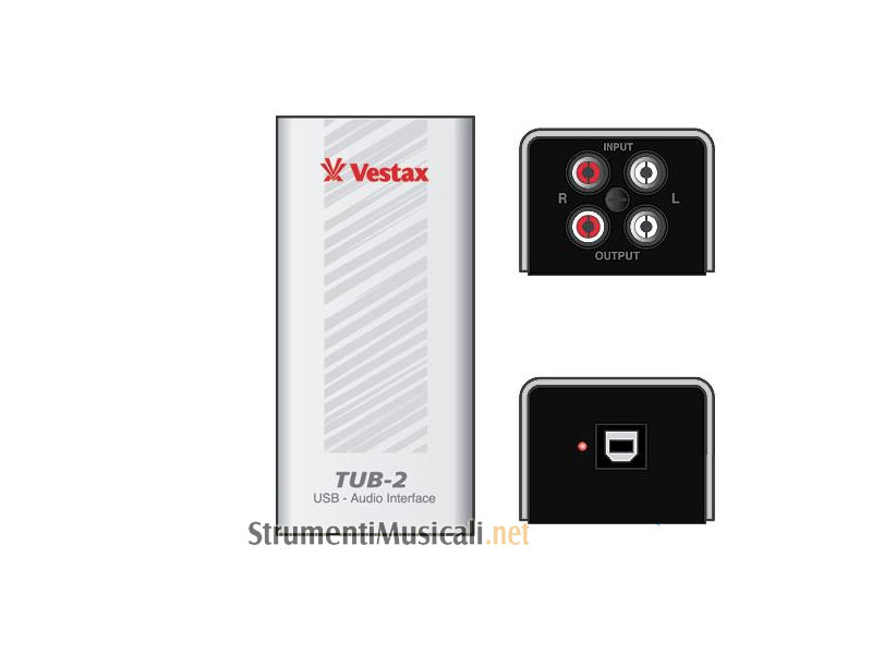 TUB-2 è una semplice ed economica interfaccia audio per PC/MAC che consente l'interfacciamento con giradischi ed altri strumenti o apparecchi DJ professionali. Compatta e leggera non necessita di drivers proprietari e si alimenta dal bus USB del computer. Semplice trasferimento plug and play di audio analogico (stereo) via USB. Equalizzatore RIAA incorporato di alta qualità per la connessione a giradischi standard. Selezione di ingresso Phono/Linea, 1 ingresso Phono/Linea stereo (RCA), 1 uscita Phono/Linea stereo (RCA).