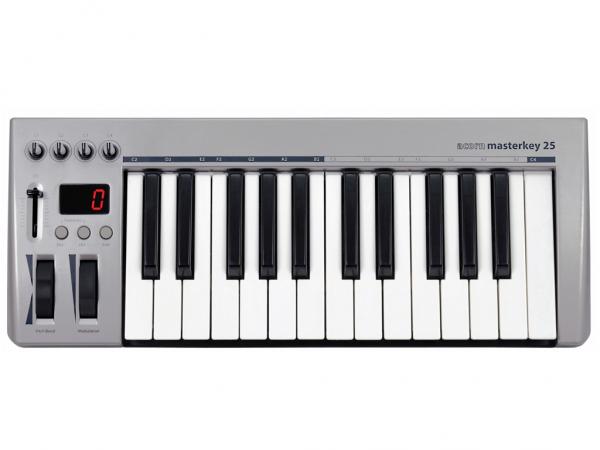 La tastiera controller MIDI USB Masterkey 25 apre le porte alla creazione di computer music portatile e fornisce il controllo necessario per liberare la tua creatività.I 25 tasti sensibili alla velocity hanno una risposta dinamica e veloce ideale per programmazione di linee di basso , batterie o eccellenti synth. Si può utilizzare qualsiasi software MIDI standard o Presonus Studio One Artist in dotazione. Il design compatto e leggero è ideale per applicazioni mobili, ovunque la tua musica ti porti.