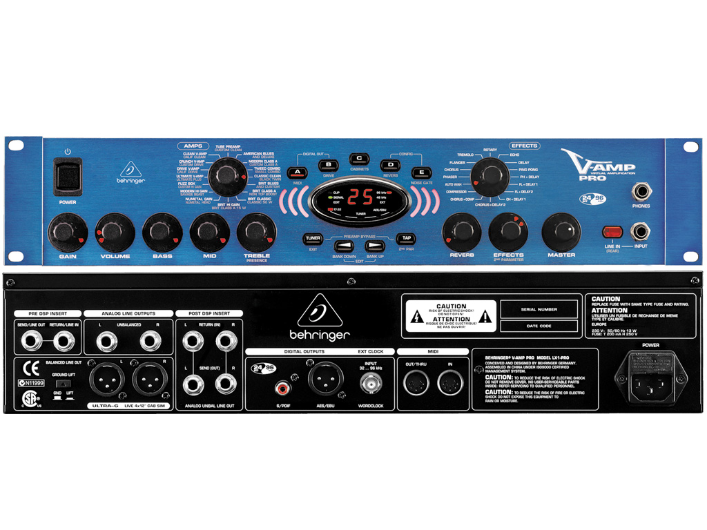 Il V-AMP Pro è la versione a rack 19" del V-AMP 2 con ampia connettività MIDI e digitale. È possibile ottenere una straordinaria collezione di 32 classici amplificatori, 15 cabinet e 16 leggendari effetti: dai combo vintage a mostri con Gain sovralimentato. Memorizza le tue impostazioni predefinite nelle 125 locazioni di memoria o procurati i preset sviluppati da migliori musicisti contemporanei. Vai alla ToneLibrary Behringer per avere ancora di più.