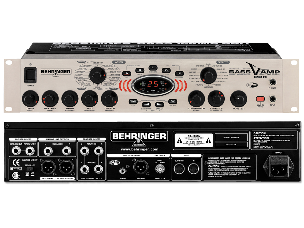 BASS V-AMP PRO è la versione rack 19" del BASS V-AMP con ampia connettività MIDI e digitale. Approvato da guru del basso Alphonso Johnson, Ken Taylor e Hellmut Hattler, è uno strumento fondamentale per bassisti, chitarristi acustici ed elettrici e tastieristi. E' come avere 4 modellatori in un box al prezzo di uno. Scegli fra 32 classici amplificatori, 23 cabinet e 16 modelli di effetti leggendari. Conserva i tuoi preset nelle 125 locazioni di memoria, oppure scarica i preset sviluppati dai migliori musicisti di oggi. Vai al ToneLibrary di Behringer per avere ancora di più. Il BASS V-AMP PRO include ​​inserti pre-DSP ​​Send/Return e post-DSP stereo oltre a uscite stereo bilanciate XLR DI con gound lift. Un ingresso wordclock BNC per la sincronizzazione e un uscita digitale 24-bit/96 kHz con connettori AES/EBU e S/PDF. Inoltre, ha un esclusivo auto wah ed effetti rotary Behringer, un uscita DI con simulazione di cabinet ULTRA-G creata da Juergen Rath. Il BASS V-AMP PRO è il tuo miglior partner in studio, ma puoi portarlo anche al tuo prossimo concerto.