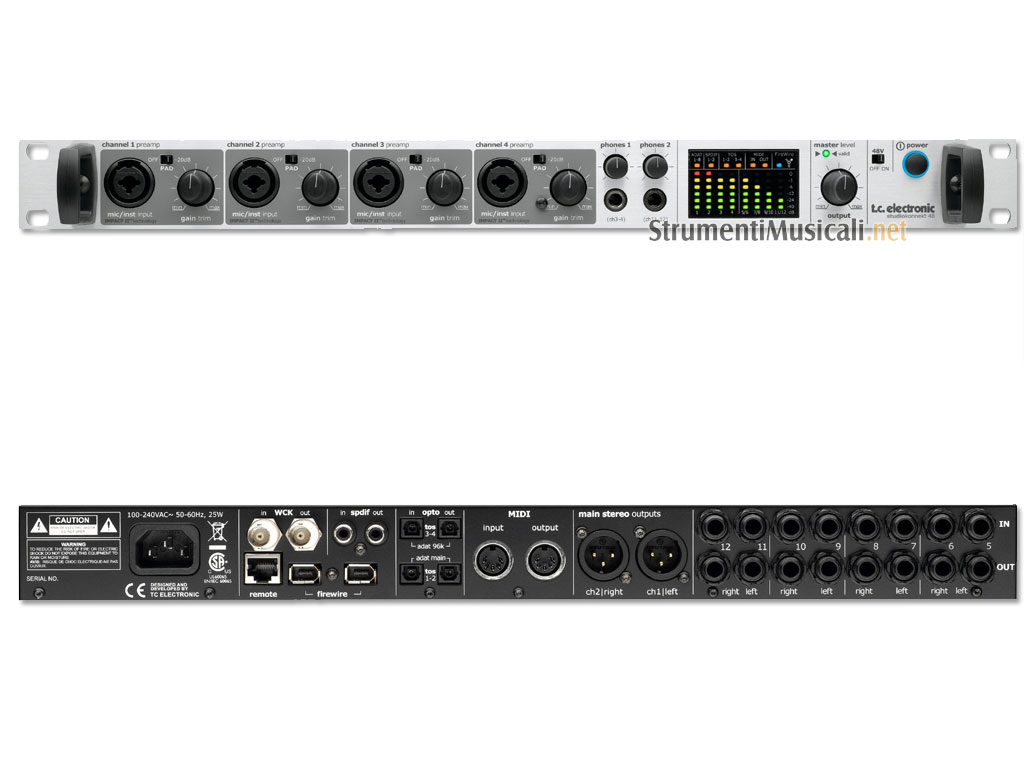 Studio Konnekt 48 offre una gamma completa di funzioni professionali che rendono la registrazione, il mixaggio ed il monitoraggio un gioco da ragazzi. Sono presenti tutti gli strumenti di registrazione essenziali, tra cui effetti DSP, una varietà di opzioni di I/O, gestione altoparlanti e molti altri potenti strumenti ancora. L'ampia sezione I/O dispone di 4 preamplificatori IMPACT II ™. Con 8 ingressi linea sul pannello posteriore, il numero totale degli ingressi analogici in stream contemporaneamente è di 12, e 12 sono le uscite analogiche. Due uscite presentano un controllo digitale sulle connessioni analogiche XLR per un collegamento ottimale con i tuoi monitor principali, mentre la sezione di uscita analogica ha 2 uscite per cuffie indipendenti. Studio Konnekt 48 viene fornito con effetti DSP di prima classe, tra cui Fabrik C Studio, un Channel Strip facile da usare e uno strumento di masterizzazione che offre un EQ 4-bande, compressione multibanda e limiter basato su algoritmi TC System 6000. Anche in esecuzione su DSP troverete il Fabrik R Studio, un riverbero senza compromessi basato sulla tecnologia TC Electronic Reverb 4000. Ha una potenza DSP 24/8 con mixer digitale a 48-bit a doppia precisione, non vi è alcun compromesso di routing per tutte le uscite e una ricchezza di uscite offre il massimo della flessibilità.