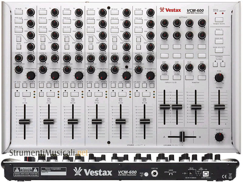 Il VCM-600 è un controller MIDI per DJ progettato con la tecnologia Vestax mixer. Sono disponibili 160 parametri da assegnare al software di controllo, tra cui Ableton Live 6 e 7, per dare piena libertà di creazione e performance live di alto livello. La serie VCI è stata progettata con le JOG Wheel per duplicare le operazioni che vengono fatte normalmente col giradischi. D'altro canto, il VCM-600 è un controller specializzato per la miscelazione, che offre eccellenti prestazioni per i DJ che mixano musica digitale in formato mp3 con l'ausilio del computer. ll controller MIDI VCM-600 condivide lo stesso controllo di qualità sulle parti utilizzate dai mixer Vestax. Stessa qualità quindi ed alte prestazioni per un mixer-controller MIDI altamente professionale.