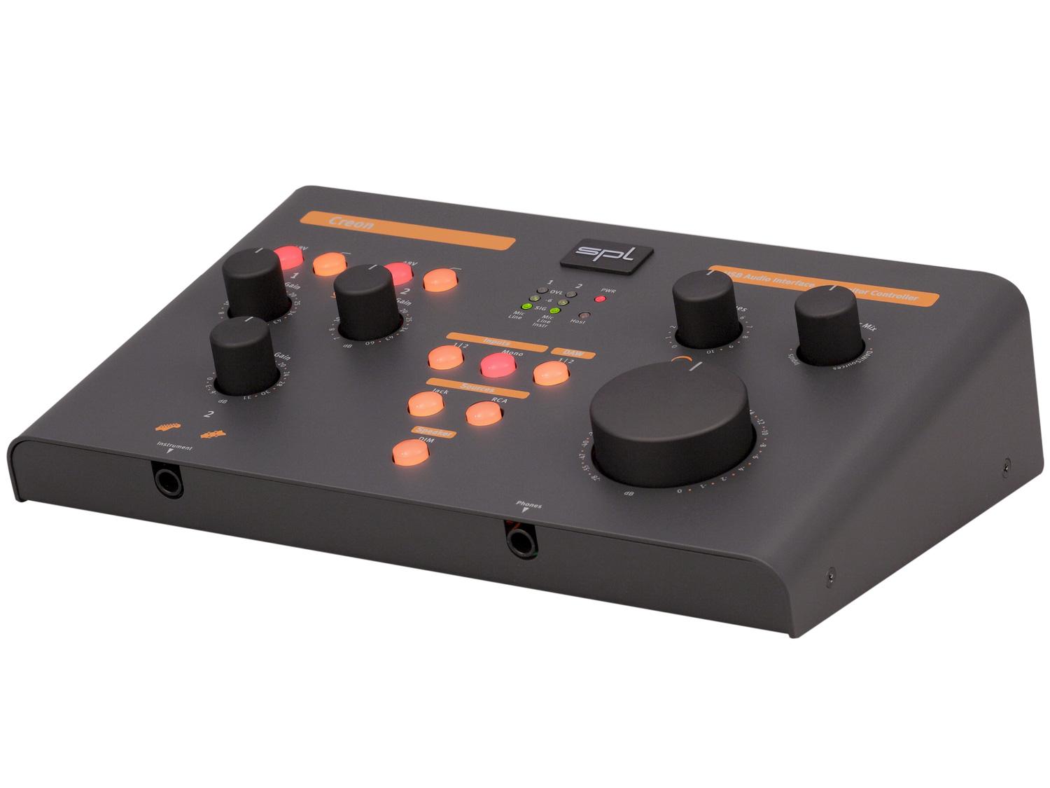 L'SPL Creon combina un interfaccia USB ad alte prestazioni ed un monitor controller analogico in una sola unità. Presenta gli stessi convertitori premium e le caratteristiche del più grande SPL Crimson. Inoltre è stato ottimizzato per soddisfare le esigenze di piccoli home e project studio. Il Creon è stato concepito fondamentalmente come interfaccia AD/DA a due canali. Il preamplificatore per strumenti ed i due preamplificatori microfonici, assieme agli ingressi di linea, consentono all'utente di amplificare, monitorare e convertire tutti i tipi di segnali e di registrarli con una DAW. Inoltre, le caratteristiche globali del monitor controller analogico consentono di monitorare il segnale registrato senza latenza, e di confrontarlo allo stesso tempo con altre fonti analogiche grazie al secondo ingresso. Oltre ai convertitori AD / DA e la porta USB, tutte le altre funzioni possono essere utilizzate in modalità standalone. La manopola Monitor-Mix permette di miscelare in maniera intuitiva i segnali corrispondenti e ascoltarli attraverso cuffie o altoparlanti.