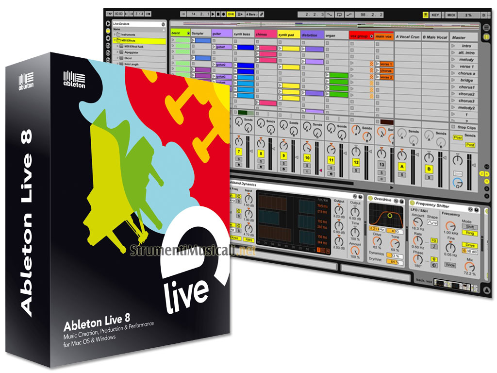 Live 8 include una vasta gamma di nuove tecniche e di miglioramenti con un nuovo groove engine, un warping rinnovato, Live Looping, nuovi effetti, dissolvenze incrociate nell'arrangement view e un editor MIDI rielaborato. Live offre due finestre principali, la Session View e la Arrangement View che interagiscono in un unico potente modo permettendo di creare, produrre e suonare la vostra musica con un'unica applicazione. La Session View di Live è unica ed è un potente taccuino musicale ed un launch pad, permette di provare facilmente le nuove idee e di improvvisare liberamente. Ogni cella della griglia della Session View può contenere una registrazione, un file MIDI, o qualunque altra idea musicale. Queste idee (Clip) possono essere registrate al volo o essere trascinate all'interno di una cella, consentendo di suonarle nell'ordine che preferite e che preferite. Arrangement View offre un ambiente classico simile agli altri software musicali, basato su un'organizzazione lineare e temporale delle tracce, ideale per la registrazione multitraccia, il Midi sequencing, l'automazione, l'editing e tutte le altre funzioni richieste ad una DAW.