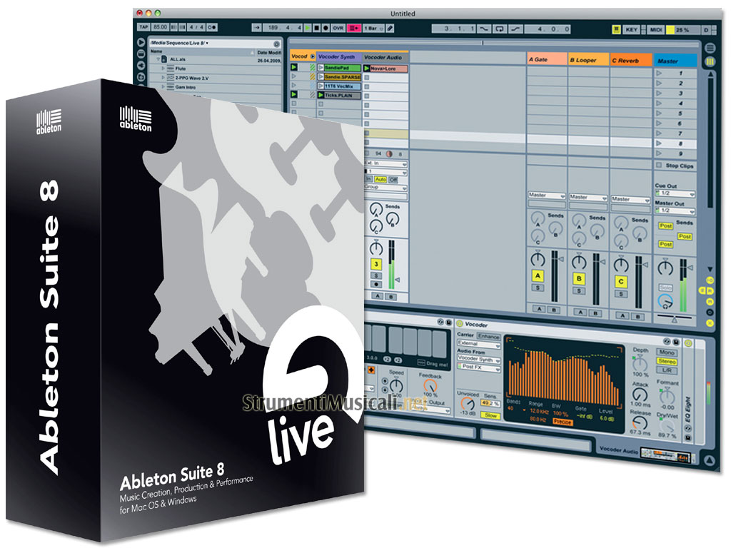 Ableton Suite è la versione XL di Ableton Live. Suite 8 fornisce tutte le caratteristiche di Live 8 più i Suoni con le nuove librerie. Suite 8 include 10 strumenti Ableton e le librerie in un unico conveniente pacchetto. Ableton Suite è disponibile nella versione boxed (in scatola) e comprende Ableton Live 8, Sampler, Operator, Electric, Analog, Tension, Drum Machines, Essential Instrument Collection 2, Session Drums, Collision e Latin Percussion.