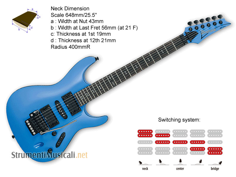 • Humbucker INF2 (ponte) + humbucker INF1 (manico) + single coil INFS1 (centrale)