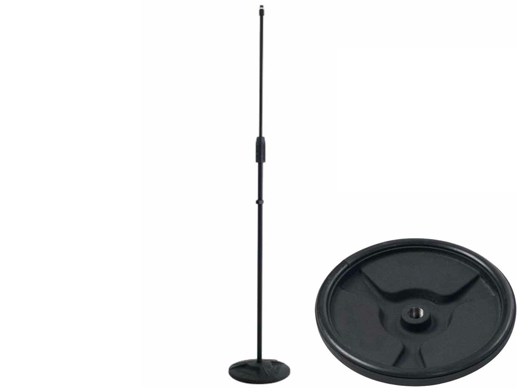 Asta microfonica professionale dritta con base in ghisa provvista di manicotto per la regolazione dell'altezza realizzato in nylon ricoperto di morbida gomma Soft-Grip che permette una presa sicura. La base in ghisa, oltre ad offrire un'elevata stabilità è dotata di anello circolare in gomma che evita qualsiasi vibrazione/feedback.
