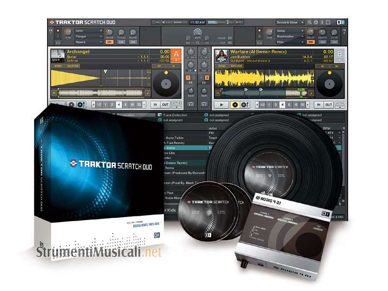 TRAKTOR SCRATCH DUO è la soluzione completa (hardware e software) creata per gli aspiranti Dj, un sistema che vi permetterà di mixare i vostri file digitali con un feeling analogico. TRAKTOR SCRATCH DUO viene fornito con il software "TRAKTOR DUO" versione semplificata del potentissimo Traktor PRO, l'interfaccia AUDIO 4 Dj, CD e Vinili con il codice di sincronizzazione, il tutto ad un prezzo molto conveniente. Il software fornito in dotazione è il TRAKTOR DUO, si presenta con un'interfaccia molto intuitiva con due player deck. Ha la possibilità di effettuare loop, molteplici cue point e di avere tre effetti per ogni canale. TRAKTOR SCRATCH DUO unisce la facilità d'uso all'affidabilità derivata dall'esperienza di NATIVE INSTRUMENT del digital DJing.