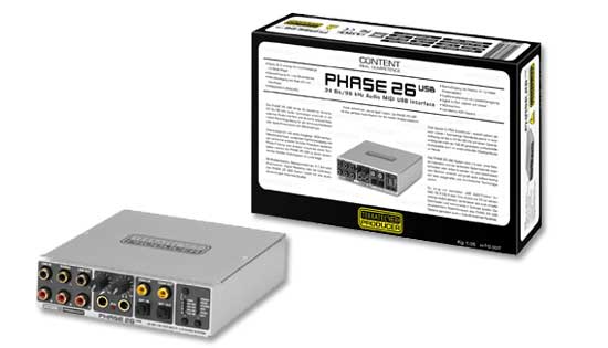PHASE 26 è la prima interfaccia audio esterna realizzata da TerraTec con connessione USB e supporto dei 24bit/96kHz, e costituisce di fatto la soluzione ottimale nell'ambito della produzione audio per sistemi portatili PC o Mac equipaggiati di porta USB.