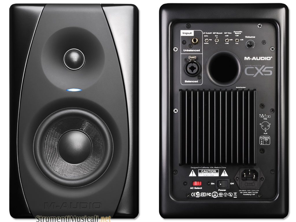 I monitor di riferimento Studiophile® CX5 di M-Audio combinano driver appositamente progettati, guide d'onda "OptImage IV" ad alte prestazioni, taratura dei crossover estremamente precisa ed un avanzato sistema di controllo "Acoustic Space", offrendo una eccellente risposta fuori asse, una bassissima distorsione, un esteso spazio sonoro e la flessibilità di adattamento ad ogni situazione acustica.