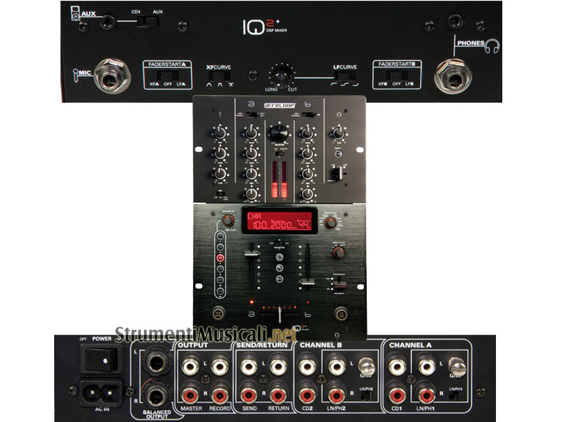 Il Reloop IQ2+ è il fondatore della nuova generazione di mixer Reloop. Con la serie IQ+, Reloop stabilisce il concetto di mixer integrale che fonde creatività, facilità d'uso e design un un nuovo standard per quanto riguarda i mixer per DJ: intelligenza qualitativa. Il Reloop IQ2+ dimostra le sue qualità come mixer grazie ad un'unita DSP e a un filtro passa-bassi e passa-alti manuale oltre che all'esclusivo sistema OneTouch di gestione degli effetti. I tre effetti di crossfade, Filter-X, Delay-X e Patch-X, manualmente o automaticamente rendono il crossfading del canale innovativo e intuitivo. Il risultato è un'eccezionale fusione delle traccie nel mix. Il grande display garantisce una perfetta visione d'insieme degli effetti e del contatore di BPM. Il Reloop IQ2+ è altresì convincente grazie alle sue mitiche capacità di mixing e di scratching: i fader regolabili sono di alta qualità, l'equalizzatore si gestisce attraverso controlli pratici e maneggevoli, i minifader per il CUE/MIX sono di dimensioni maggiori rispetto a prodotti simili e la grande manopola in stile vintage permette il controllo del volume master con estrema semplicità. Il design dell'IQ2+ è nel contempo aggressivo, dinamico ed ben progettato per far fronte ad ogni situazione live: il pannello superiore è rifinito in gomma e quello inferiore è di alluminio satinato. Particolarmente scenografica la retroilluninazione di colore rosso dei controlli. Il nuovo IQ2+ promette di essere il primo passo verso una nuova era.