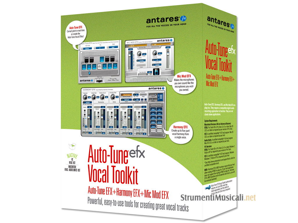 Powered by the same ground-breaking Evo™ Voice Processing Technology as Antares' Auto-Tune Evo, the latest generation of the worldwide standard in professional pitch correction, Auto-Tune EFX makes Antares-quality pitch processing accessible to anyone engaged in computer-based audio recording. Designed to make almost everything automatic, Auto-Tune EFX provides two different flavors of the Auto-Tune Vocal Effect as well as real-time pitch correction. Just select your desired effect type, set the key and scale of your track, and Auto-Tune EFX does the rest. For songs with complex chord progressions or modulations, you can optionally set up custom scales or use your host's automation facility to allow the processing of virtually any vocal line.