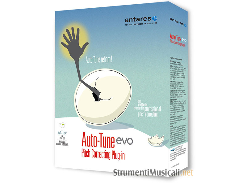 Antares ha definito lo standard mondiale professionale della correzione d'intonazione e Auto-Tune è sicuramente il tool più veloce e semplice per correggere il pitch. Ora il plugin audio più venduto al mondo arriva alla nuova versione Evo. Evo (™) Voice Processing Technology, è una tecnologia sviluppata da Antares in grado di offrire nuove funzionalità e una più precisa ed accurata rilevazione e correzione dell'intonazione, ora ancora più efficace ed affidabile per una più ampia gamma di sorgenti audio. Lo straordinario impatto di Auto-Tune nel mondo dell'industria discografica è stato persino analizzato dall'autorevole quotidiano The New Yorker, che ha dedicato per la prima volta un articolo a un software per la produzione musicale. La nuova versione Auto-Tune Evo consente naturalmente di svolgere tutte le funzioni che hanno reso celebre questa applicazione, consentendo sempre di correggere l'intonazione di una voce o di un singolo strumento in tempo reale, senza artefatti o distorsione, preservando tutte le caratteristiche dell'esecuzione originale. Ma la nuova tecnologia implementata per il processamento vocale, così come le due nuove modalità Automatic (per la correzione del pitch in tempo reale) e Graphical (che visualizza l'inviluppo del pitch del segnale audio da correggere, insieme ad una selezione di tool grafici che consentono un editing ancora più preciso dell'esecuzione) fanno compiere a questa nuova versione Evo un notevole passo in avanti verso risultati fino a pochi anni fa impensabili e ottenibili ora grazie al costante e considerevole aumento delle risorse di calcolo dei processori e alle indiscusse qualità degli ingegneri Antares nello sviluppo di nuovi potenti algoritmi.