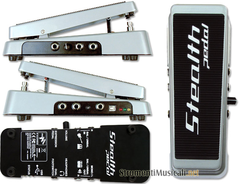 STEALTHPEDAL™ è il primo controller USB sottoforma di pedale wah che consente all' utente di registrare, suonare e controllare l' interfaccia audio/software "Powered by Amplitube" o qualunque altro software gestibile via MIDI, con la stessa facilità di uso ed espressività di un tradizionale pedale per chitarra. STEALTHPEDAL™ permette a tutti di registrare chitarre o bassi con il proprio PC/Mac alla più alta qualità possibile, con una conversione 24-bit A/D e D/A a 44.1/48 KHz. Sono inoltre presenti due ingressi separati per strumenti Hi-Z or line level , così come due output separati altre ad una uscita per cuffie. STEALTHPEDAL™ funziona anche come controller software: il pedale d'espressione e lo switch possono essere associati con qualunque parametro del software "Powered by Amplitube", e con qualunque altro modellatore di effetti o di amplificatori controllabile via MIDI. Lo STEALTHPEDAL™ può essere completato con un un pedale d'espressione addizionale e due switch extra per costruire una mini-pedaliera e controllare singoli effetti - preset per un uso dal vivo a in sala. STEALTHPEDAL™ gestisce qualunque plug-in, strumento virtuale o DAW controllabile via MIDI.