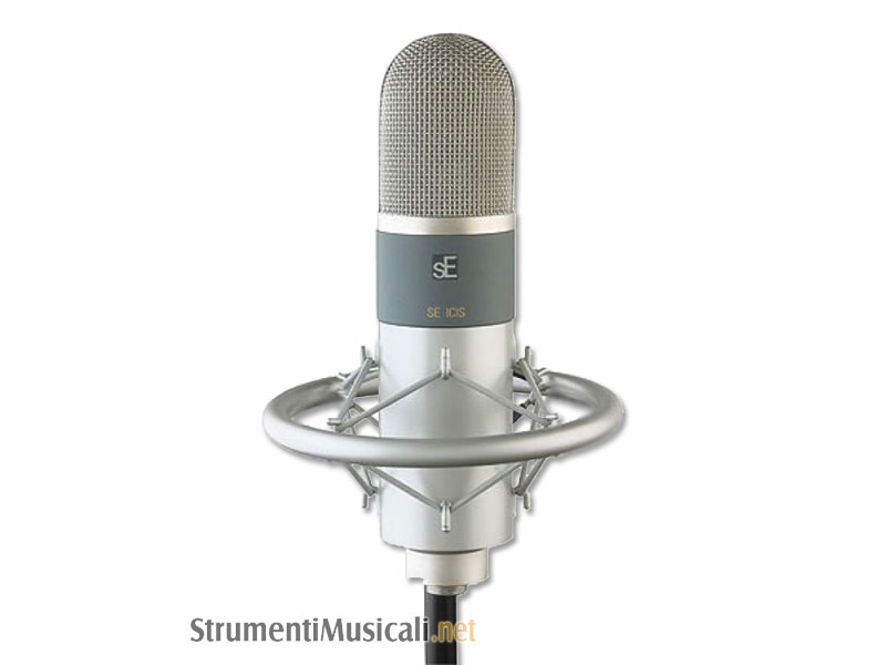 Il modello Icis è uno degli ultimi microfoni sviluppati da sE Electronics e si distingue, tra le altre cose, per un design all'avanguardia e il solito straordinario rapporto prezzo/prestazioni garantito da questo marchio. L'Icis integra lo stesso diaframma largo dorato da 1,07" del modello Z5600a, con un pattern polare fisso cardioide. Per la ripresa di parti vocali si tratta di un autentico 'must'. Include shockmount e flightcase. sE - Sound Engineering - è universalmente considerato uno dei 'top brand' nel settore dei microfoni da studio, con una fama ben consolidata a livello internazionale, basti pensare che nella sua pur breve storia è già diventato il marchio numero uno in Gran Bretagna e con il più veloce incremento di diffusione in Europa. Utilizzati da professionisti del calibro di Stevie Wonder e Courtney Pine, i trasduttori sE si sono imposti in questi anni per un perfetto connubio tra qualità ed economicità dei microfoni, come possono facilmente testimoniare le entusiastiche recensioni apparse sulle principali riviste internazionali di settore, i moltissimi riconoscimenti ('Mix Certified Hit' e Mia Music Awards nel 2006 come 'Mic of the Year') e la grande soddisfazione con la quale un numero sempre maggiore di professionisti lavora con questo marchio. I microfoni sE sono realizzati con un ciclo di produzione di tipo artigianale, le capsule sono interamente 'hand made' (!) e la straordinaria qualità e la cura maniacale nei dettagli è testimoniata dal fatto che ogni singolo microfono prima di uscire dalla fabbrica viene sottoposto ad un test specifico da parte degli ingegneri del suono di sE, non soltanto da una semplice macchina. Del resto se un personaggio del calibro di Rupert Neve ha deciso di collaborare per il 2008 con sE Electronics per la realizzazione di una nuova gamma di microfoni "Rupert Neve Signature" un motivo ci deve pur essere...