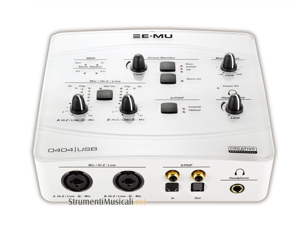 E-MU's new 0404 USB 2.0 Audio/MIDI Interface delivers an unparalleled level of audio performance to your Mac or PC with premium 24-bit/192kHz A/D and D/A converters, pristine XTC™ mic/line/hi-Z preamps, ultra-low jitter clock and rock-solid stability. From its plug-and-play functionality and hands-on ergonomic design to professional features and signal-to-noise specs that are simply unmatched by any other USB interface on the market, the 0404 USB will forever change your expectations of USB audio. The 0404 USB also ships with Windows XP/Vista compatible E-MU Production Tools Software Bundle that includes E-MU's Proteus VX, as well as software by Cakewalk, Steinberg, Ableton, IK Multimedia, and many more - everything you need to create, record, edit and master your music.