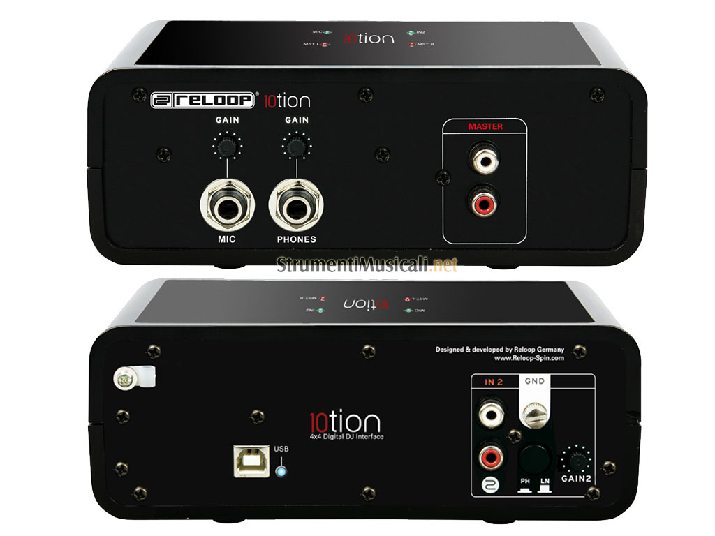 Interfaccia audio per DJ dotata di connessione USB 2.0 con alimentazione dalla porta USB, In stereo analogico (RCA) linea/phono con regolazione del guadagno, 1 In per microfono con jack da 6,3 mm, Out stereo RCA, 1 Out per cuffia con jack da 6,3 mm con regolazione del volume, indicatori del livello di ingresso/uscita a LED, driver ASIO a bassa latenza per Mac OSX e Windows XP/Vista, dimensioni mm 180 x 130 x 84.