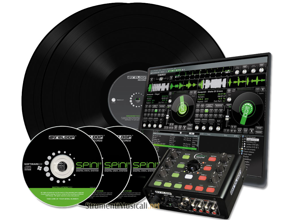 Reloop Spin! 2+ è un sistema professionale completo per DJ composto da interfaccia audio USB 2.0 / controller, software per il missaggio virtuale Spin! 2, vinili e CD con codice timecode. L'interfaccia audio dispone di 4 ingressi (line/phono) con regolazione del guadagno e 4 uscite in formato RCA, ingresso microfonico con phantom power 48V e regolazione del volume, uscita cuffie, uscite thru per l'utilizzo di CD e vinili tradizionali, nonchè controlli MIDI per accedere alle funzioni più importanti del software Spin 2. Grazie a 13 pulsanti, 6 manopole, ed un encoder, è possibile regolare effetti, scorrere le tracce, attivare loop, selezionare punti di cue e altro ancora, inoltre con gli speciali vinili e CD dotati di codice SMPTE ad alta risoluzione, il controllo delle tracce caricate all'interno di Spin! 2 sarà ancora più preciso e affidabile. Il software per DJ Spin! 2, consente di mixare file in formato MP3, WAV, WMA, OGG Vorbis, Audio CD, è dotato di beat-matching, time stretching, regolazione della tonalità, EQ, effetti, loop, reloop, 3 modalità di playback (Classic Spin, Avanced Spin, Jog Spin), 3 modalità di visualizzazione della forma d'onda (Complete View, Zoom View, Beat Match View), performance recorder e visualizzazione della copertina dei brani per una ricerca più intuitiva all'interno della libreria. Inoltre in Spin! 2 la stabilità del sistema e molte funzioni come Master Tempo, Speed Mode, Beat Loop, Track Selection, Quick Search, Beat Match View e Pitch sono state ulteriormente migliorate. Include driver ASIO ed è compatibile con Windows XP (SP2 o superiore) e Windows Vista (SP1 o superiore).