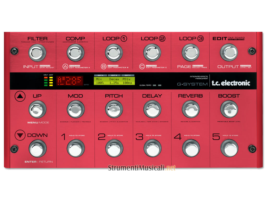 When we released G-System, we changed the world of guitar effects forever. G-System is the first guitar system to offer a combination of the very highest quality effects, amp switching, full floor control and four built-in analog FX loops that give you the ability to integrate and control your existing pedals in the set-up. Put simply, G-System offers you the very best in effects, 'hands-on' floor control and full system integration, so it's little wonder that so many guitarists the world over have fully embraced the G-System philosophy. To celebrate this success, we have just unleashed G-System Limited, a collector's edition that looks every bit as hot as it sounds. In fact, we'd go as far as to say that the best just got a whole lot better. As you can see, G-System Limited comes housed in a stunning red adonized case - but don't think this is just about the cosmetics. Sure, G-System Limited looks red hot, but we've also turned up the heat with what's under that hood. With a completely redesigned analog circuit, G-System Limited provides the purest and most uncolored signal path yet. We've also increased the number of effects on offer with several new additions in response to your feedback. First up - and by very popular demand - we've added Univibe for that Hendrix 'Machine Gun' style phase-shifting effect. There's also an ultra-fat Doubler to help you get that classic doubling effect so prevalent in '80s and '90s Rock and Metal. G-System Limited also sports brand new Reverbs, including more realistic Room and Spring Reverbs. Other features include a new KillDry option that lets you use G-System in a parallel effects loop or even with a line mixer. Finally, we've crammed an extra 100 incredible new presets in there that will provide a wealth of inspiration, no matter what kind of music you play. G-System Limited is the ultimate, go-to effects system - and with an exclusive run of only 300 you need to grab one while you can!