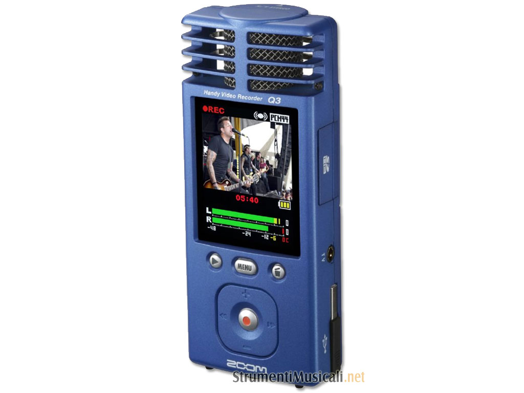 La Zoom, azienda giapponese specializzata in effetti per strumenti musicali e sistemi di registrazione, ha presentato Q3 una videocamera compatta dotata di microfono stereo professionale. L'idea è quella di poter effettuare delle semplici riprese ma nello stesso tempo registrare l'audio di un'intervista o di un concerto in alta fedeltà. I due microfoni a condensatore sono disposti in modo sovrapposto, uno orientato verso destra, l'altro verso sinistra, in modo da risultare alla stessa distanza dalla sorgente audio e restituire così una perfetta immagine stereo. Le riprese vengono registrate in MPEG4 alla risoluzione di 640 x 480 pixel su schede di memoria SD, con 32 GB si possono registrare fino a 16 ore di video.