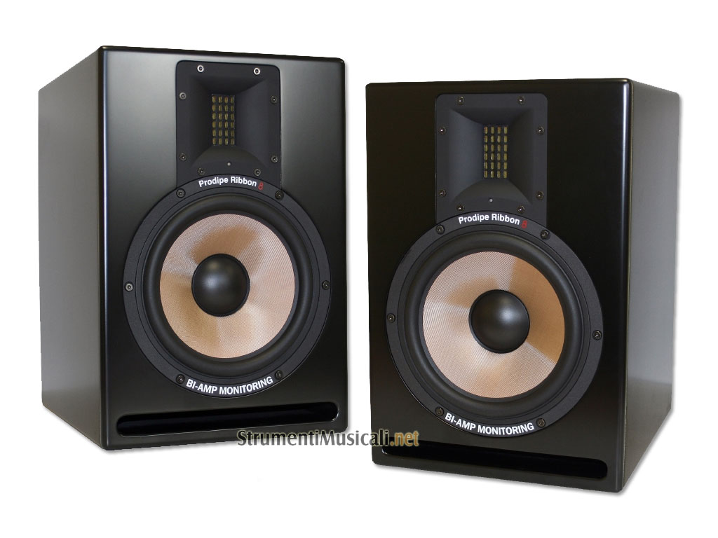 Da Prodipe nuovi monitor con tweeters a nastro e un'ottimizzazione dello spettro sulle medie frequenze. Comparati ai tweeters in metallo, plastica o tessuto, i tweeters a nastro hanno il vantaggio di avere una massa molto ridotta. Ciò comporta una accelerazione maggiore, una migliore riproduzione e una resa più naturale delle alte frequenze. Queste caratteristiche fanno di Pro Ribbon 8 i monitors ideali per registrazioni acustiche dove il timbro e lo spazio spettrale sono molto importanti.