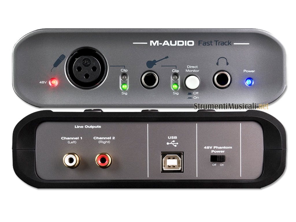 M-Audio è lieta di presentare la nuova versione di Fast Track, dotata di funzioni supplementari e i miglioramenti richiesti dai clienti, come ad esempio alimentazione Phantom per microfoni a condensatore, ingresso strumento con guadagno elevato in grado di supportare anche chitarre con livello di uscita dei pickup basso e un nuovo design ergonomico con manopole di controllo posizionate sulla parte superiore. Fast Track viene inoltre fornito con il software di registrazione Pro Tools SE.